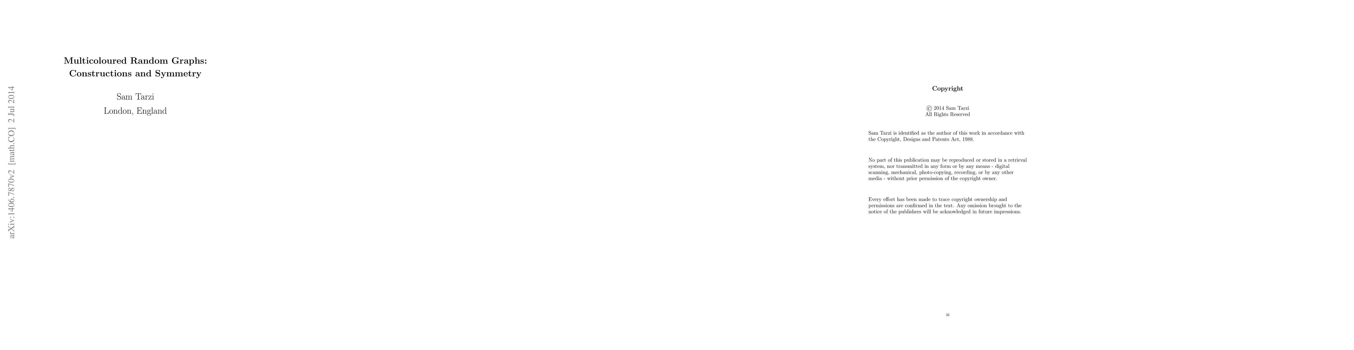 This research monograph explores constructions of multicoloured random graphs and their connections to various algebraic structures. It aims to provide an introduction to the theories used for new results and serve as a resource for researchers in related fields.