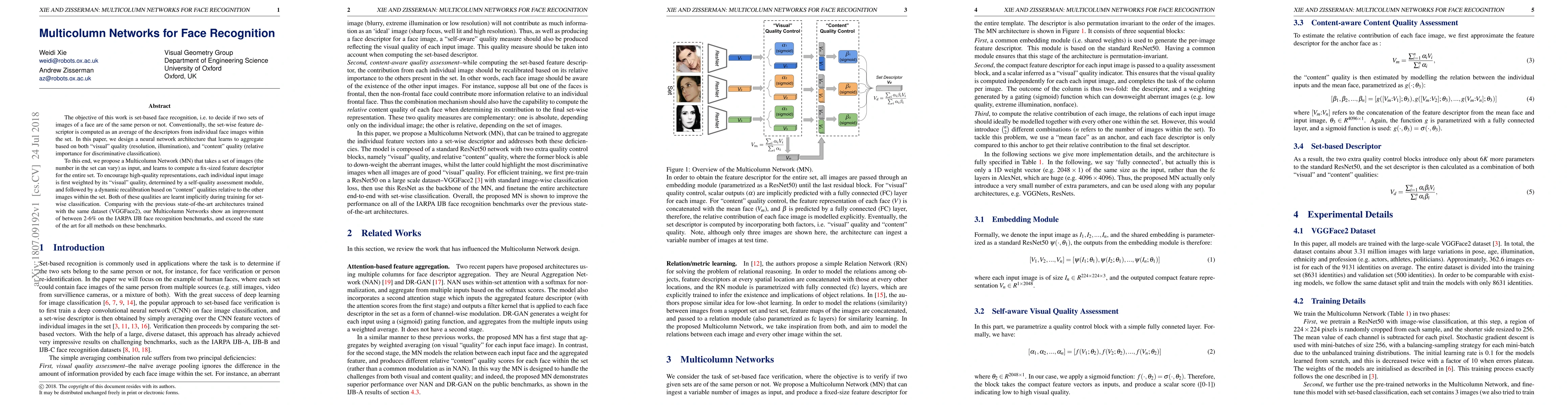 A new neural network architecture called Multicolumn Networks improves face recognition accuracy by 2-6% compared to existing methods, offering a more robust and efficient way of set-wise feature descriptor computation.