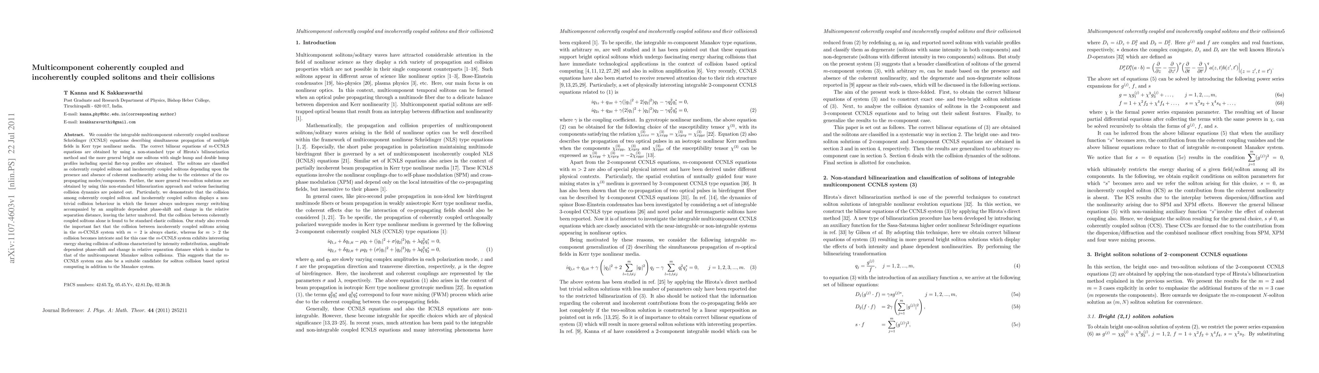 This paper investigates solitons in multicomponent coherently coupled nonlinear Schrödinger equations, classifying them into coherently and incoherently coupled types. It demonstrates unique collision behaviors, including energy switching in collisions between different types and intricate energy sharing in collisions among incoherently coupled solitons for $m>2$, suggesting potential for optical computing applications.