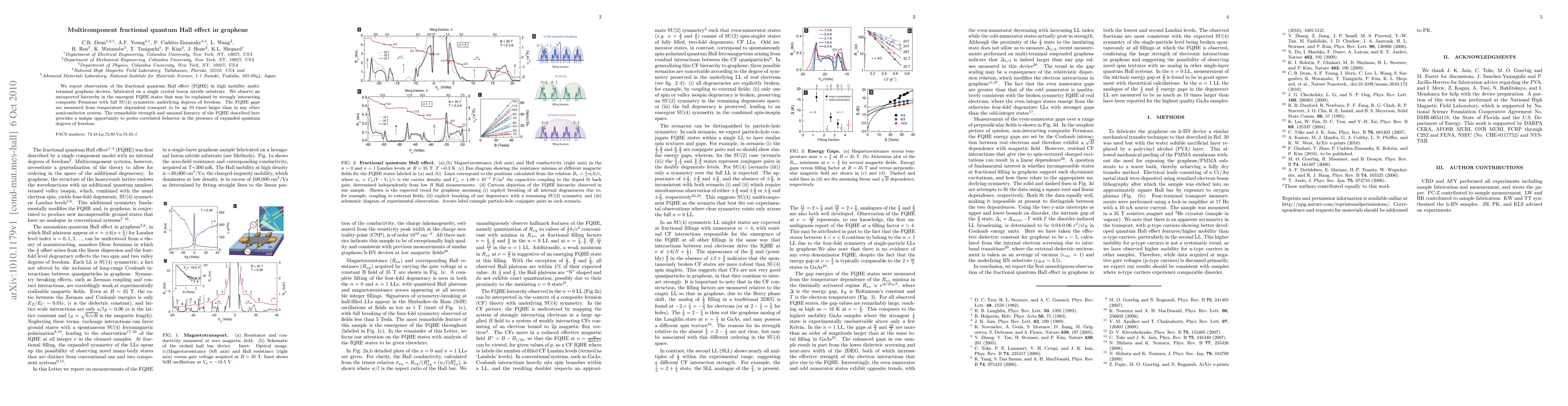 This research reports the observation of a multicomponent fractional quantum Hall effect in high-mobility graphene devices, revealing an unexpected hierarchy in the FQHE states due to strongly interacting composite fermions with SU(4) symmetry. The measured FQHE gaps are notably larger than in other semiconductor systems.