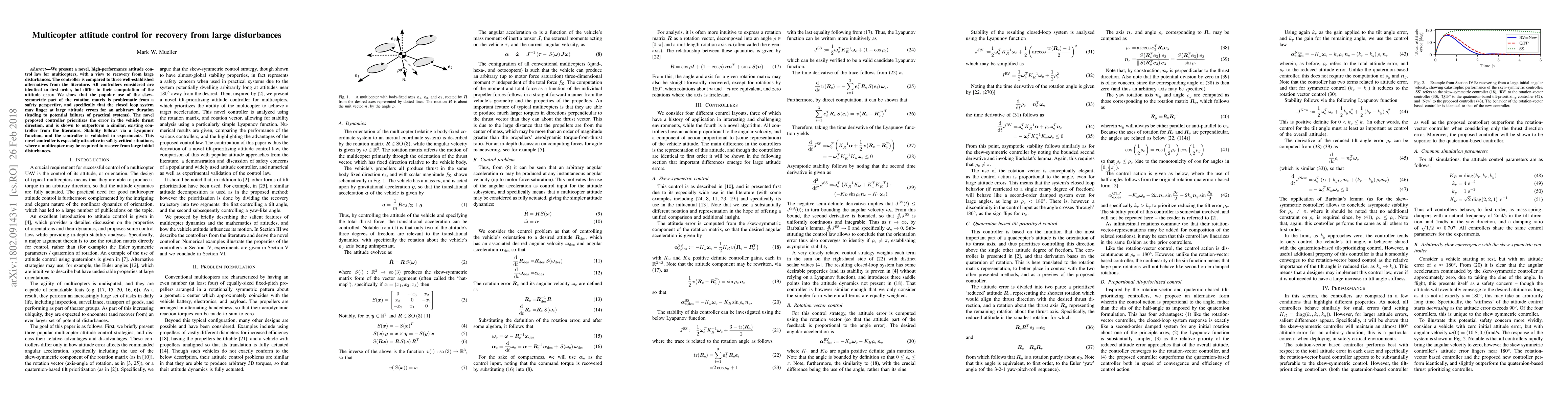 We present a novel, high-performance attitude control law for multicopters, with a view to recovery from large disturbances. The controller is compared to three well-established alternatives from the literature. All controllers considered are identical to first order, but differ in their computation of the attitude error. We show that the popular use of the skew-symmetric part of the rotation matrix is problematic from a safety perspective, and specifically that the closed loop system may linger at large attitude errors for an arbitrary duration (leading to potential failures of practical systems). The novel proposed controller prioritizes the error in the vehicle thrust direction, and is shown to outperform a similar, existing controller from the literature. Stability follows via a Lyapunov function, and the controller is validated in experiments. This novel controller is especially attractive in safety-critical situations, where a multicopter may be required to recover from large initial disturbances.
