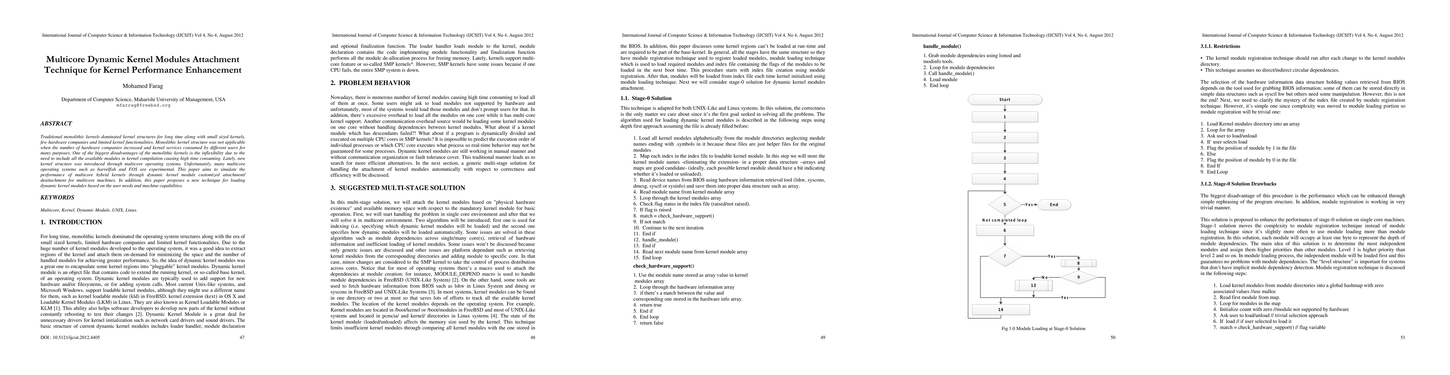 Traditional monolithic kernels dominated kernel structures for long time along with small sized kernels,few hardware companies and limited kernel functionalities. Monolithic kernel structure was not applicable when the number of hardware companies increased and kernel services consumed by different users for many purposes. One of the biggest disadvantages of the monolithic kernels is the inflexibility due to the need to include all the available modules in kernel compilation causing high time consuming. Lately, new kernel structure was introduced through multicore operating systems. Unfortunately, many multicore operating systems such as barrelfish and FOS are experimental. This paper aims to simulate the performance of multicore hybrid kernels through dynamic kernel module customized attachment/ deattachment for multicore machines. In addition, this paper proposes a new technique for loading dynamic kernel modules based on the user needs and machine capabilities.