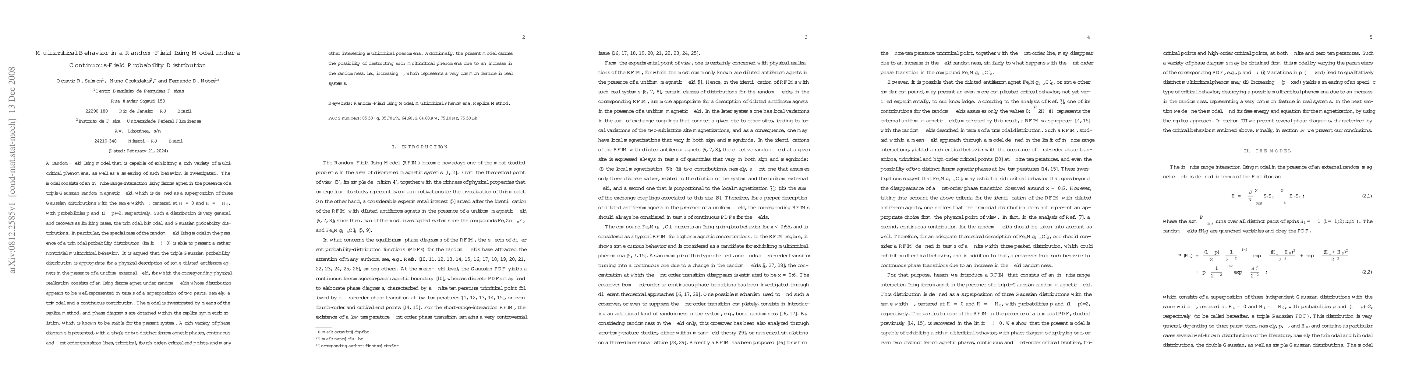 This paper investigates a random-field Ising model featuring multicritical behavior and its variations under a continuous-field probability distribution. The model employs an infinite-range interaction with a triple-Gaussian random magnetic field, encompassing trimodal, bimodal, and Gaussian distributions.