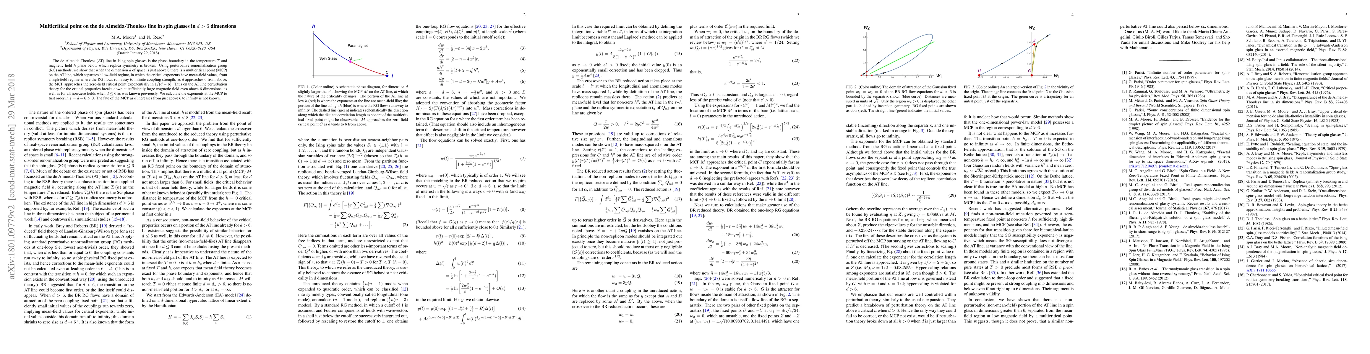 This paper demonstrates the existence of a multicritical point on the de Almeida-Thouless line in Ising spin glasses for dimensions just above 6, using perturbative renormalization group methods. It shows that this point separates regimes with mean-field critical exponents and divergent renormalization group flows, and its location approaches the zero-field critical point exponentially as the dimension approaches 6.