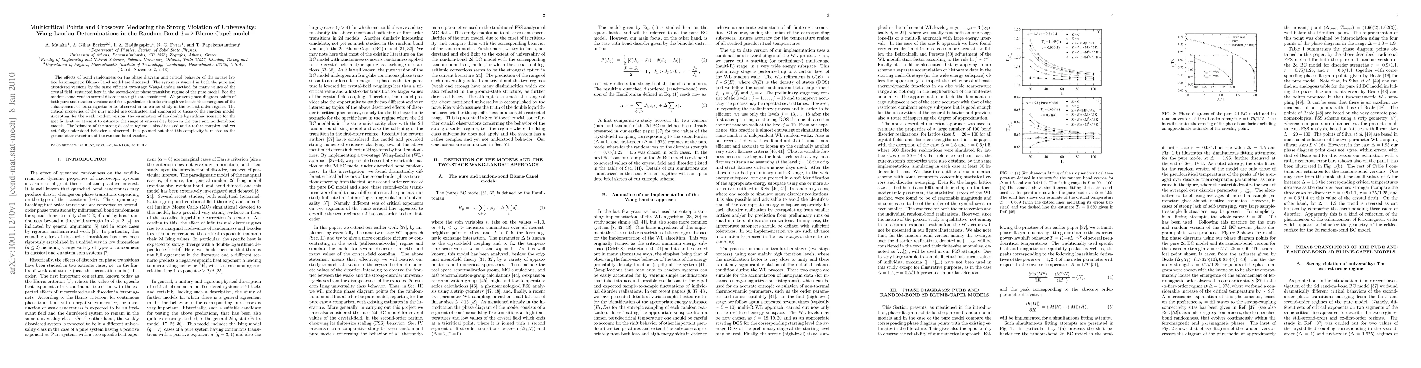 This paper investigates the impact of bond randomness on the phase diagram and critical behavior of the $d=2$ Blume-Capel model using the Wang-Landau method. It contrasts the critical properties of pure and random-bond versions, highlighting the strong violation of universality and the complex behavior in the strong disorder regime.