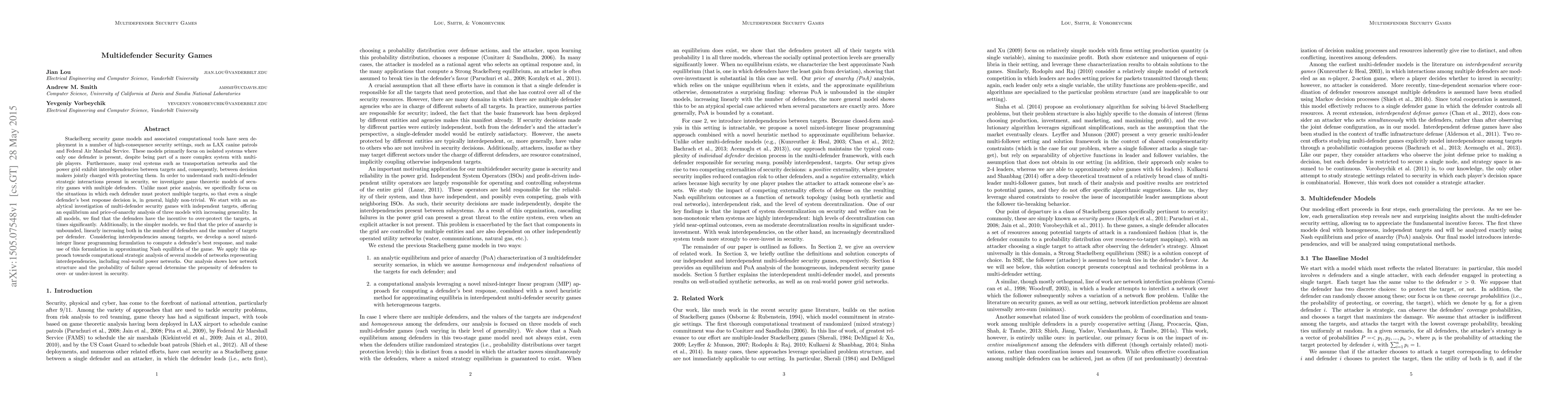 Researchers develop game-theoretic models to analyze security games with multiple defenders, finding that defenders often over-protect targets due to interdependencies between targets and decision makers, leading to potential inefficiencies in resource allocation.
