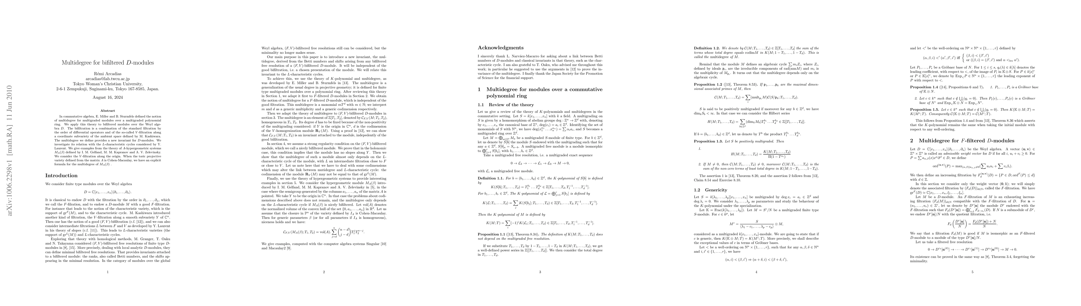 This paper extends the concept of multidegree from multigraded modules to bifiltered D-modules over the Weyl algebra, combining the standard filtration and the V-filtration. It introduces a new invariant for D-modules and explores its connection to L-characteristic cycles, providing explicit formulas for certain A-hypergeometric systems.