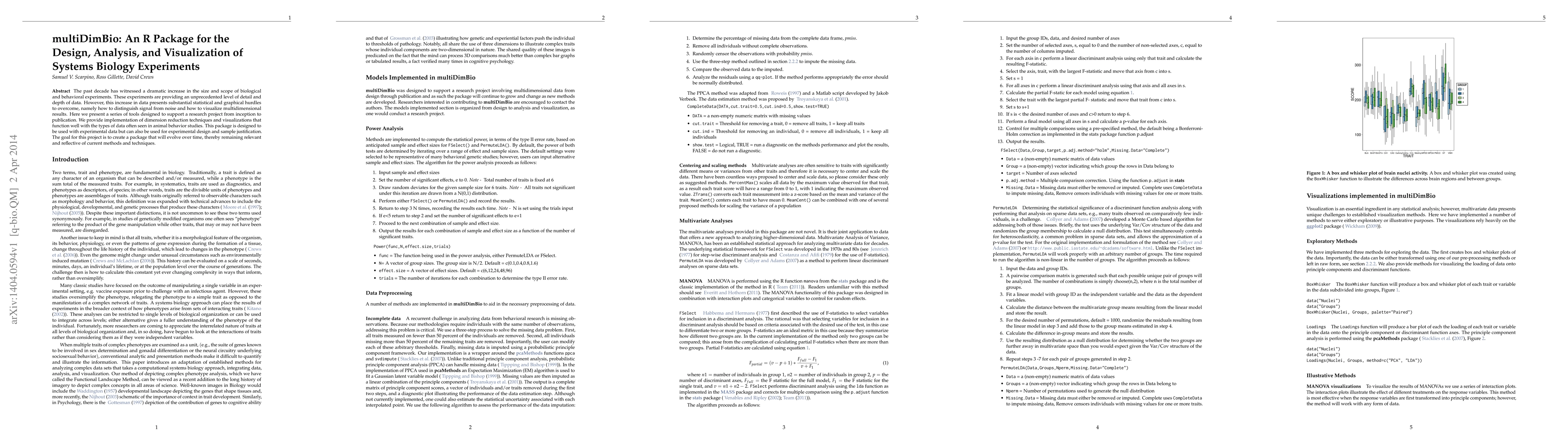 The past decade has witnessed a dramatic increase in the size and scope of biological and behavioral experiments. These experiments are providing an unprecedented level of detail and depth of data. However, this increase in data presents substantial statistical and graphical hurdles to overcome, namely how to distinguish signal from noise and how to visualize multidimensional results. Here we present a series of tools designed to support a research project from inception to publication. We provide implementation of dimension reduction techniques and visualizations that function well with the types of data often seen in animal behavior studies. This package is designed to be used with experimental data but can also be used for experimental design and sample justification. The goal for this project is to create a package that will evolve over time, thereby remaining relevant and reflective of current methods and techniques.