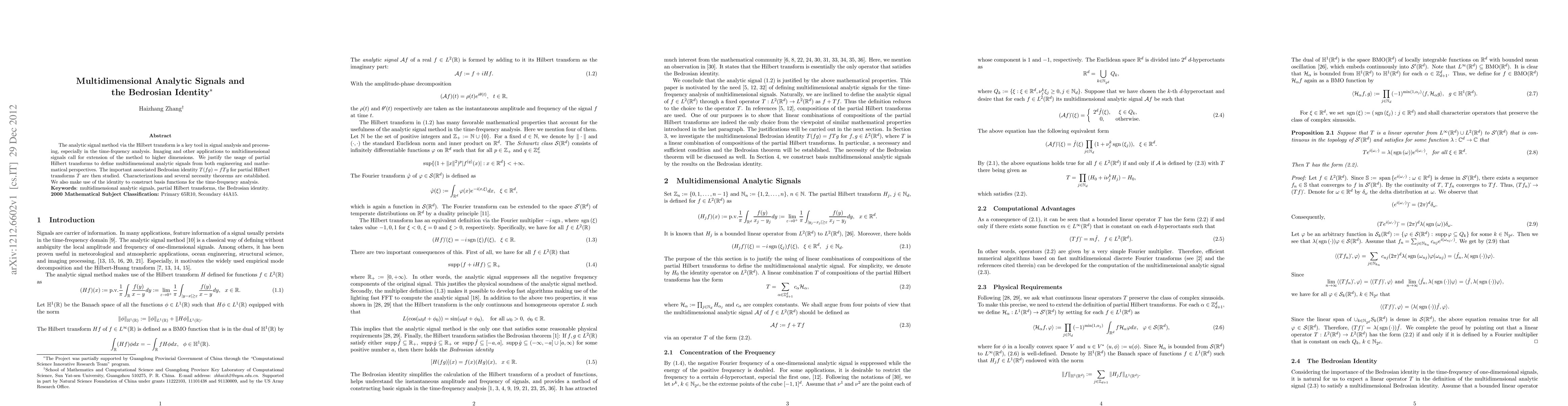 This paper extends the analytic signal method using the Hilbert transform to multidimensional signals, justifying the use of partial Hilbert transforms. It explores the Bedrosian identity and its implications, establishing necessity theorems and using it to construct basis functions for time-frequency analysis.