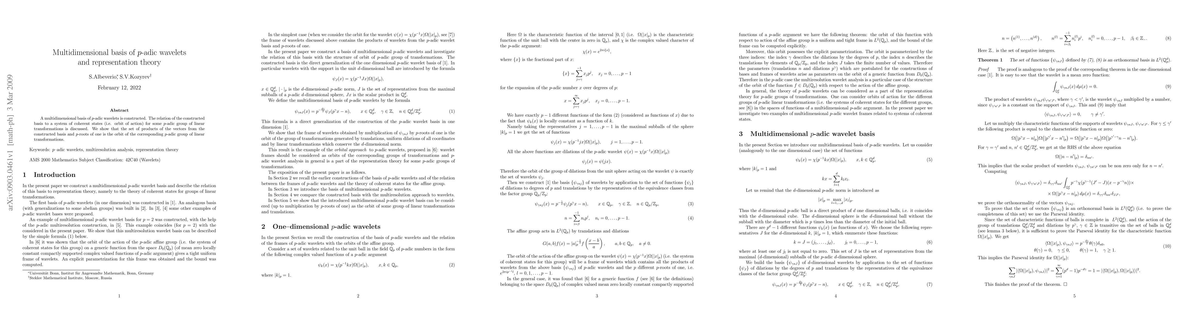 This paper constructs a multidimensional basis of p-adic wavelets and explores its connection to a system of coherent states for a p-adic group. The authors demonstrate that the basis vectors, when multiplied by p-roots, form the orbit of the corresponding p-adic group's linear transformations.