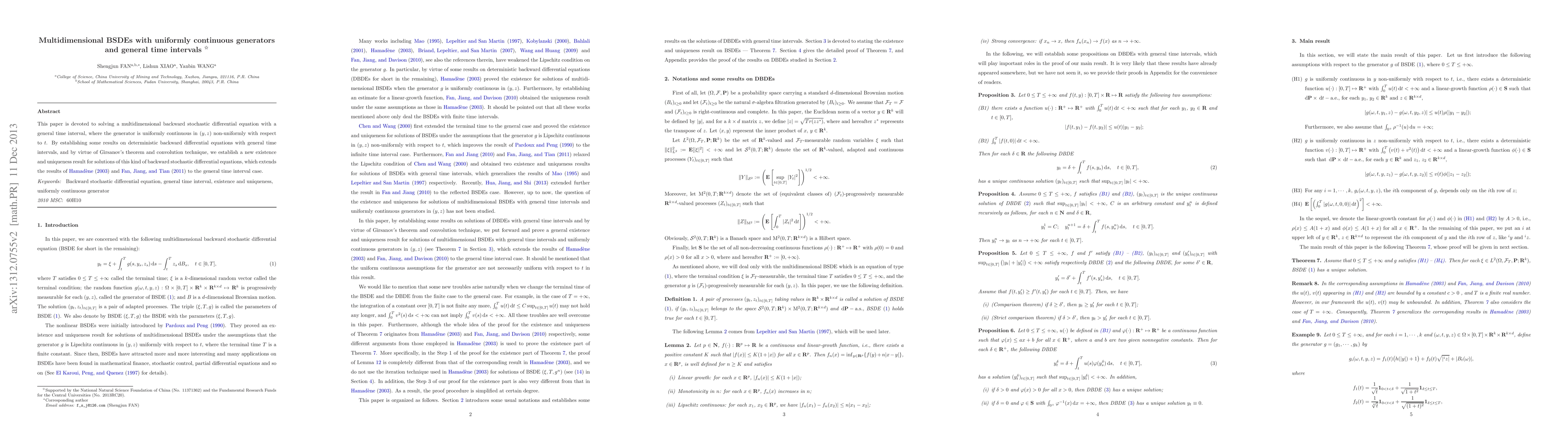 This paper solves multidimensional backward stochastic differential equations with general time intervals, extending previous results to a broader class of problems. It establishes existence and uniqueness theorems using deterministic differential equations and Girsanov's theorem, with implications for modeling complex systems.