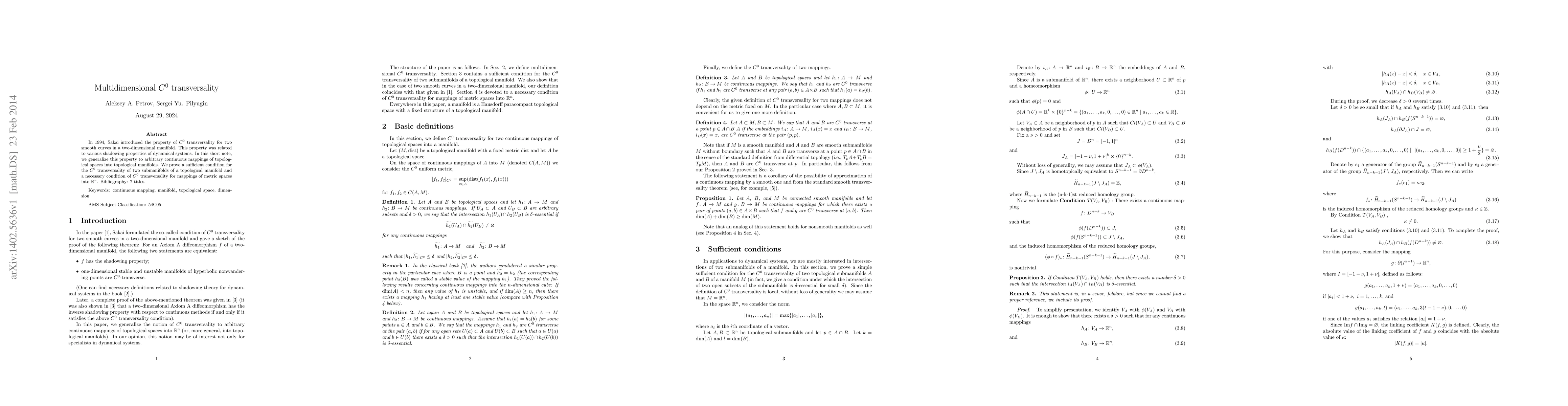 This paper generalizes the concept of $C^0$ transversality from 2D curves to continuous mappings between topological spaces and manifolds, providing a sufficient condition for submanifolds and a necessary condition for mappings into $ $.