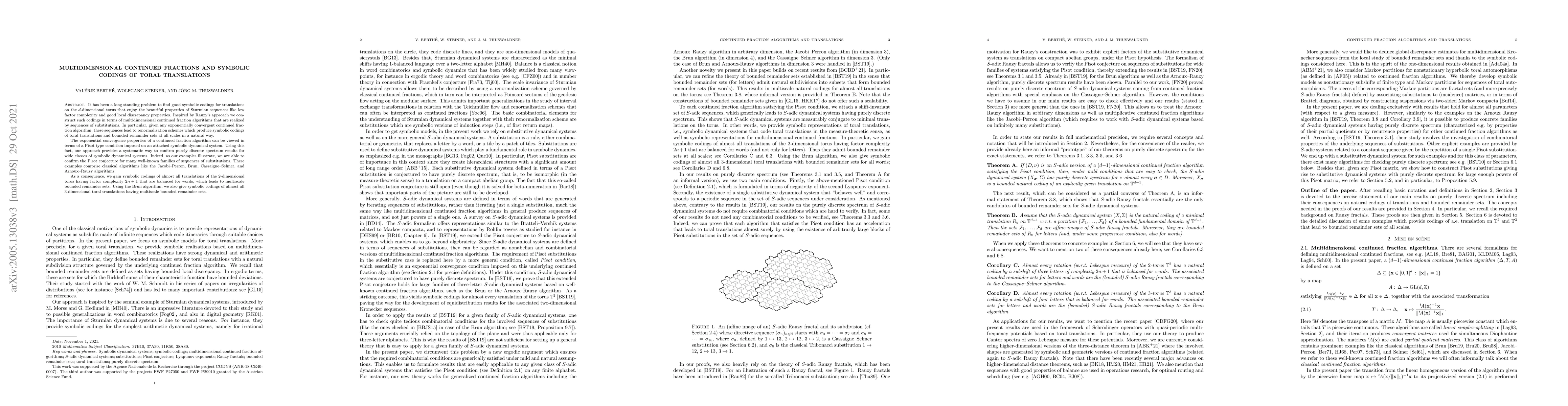 Researchers create symbolic codings for toral translations using multidimensional continued fractions, confirming discrete spectrum results for various symbolic dynamical systems and providing multiscale bounded remainder sets.