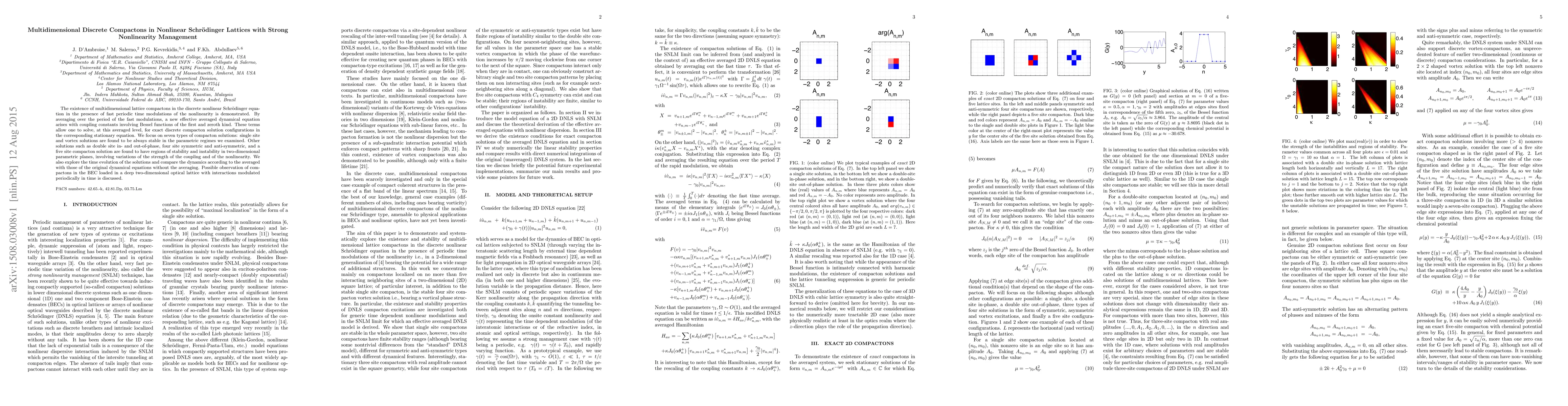 This paper demonstrates the existence of multidimensional lattice compactons in a discrete nonlinear Schrödinger equation under fast periodic modulations. It reveals stability regions for various compacton solutions and discusses the dynamics of these solutions, comparing averaged models to the original equations.
