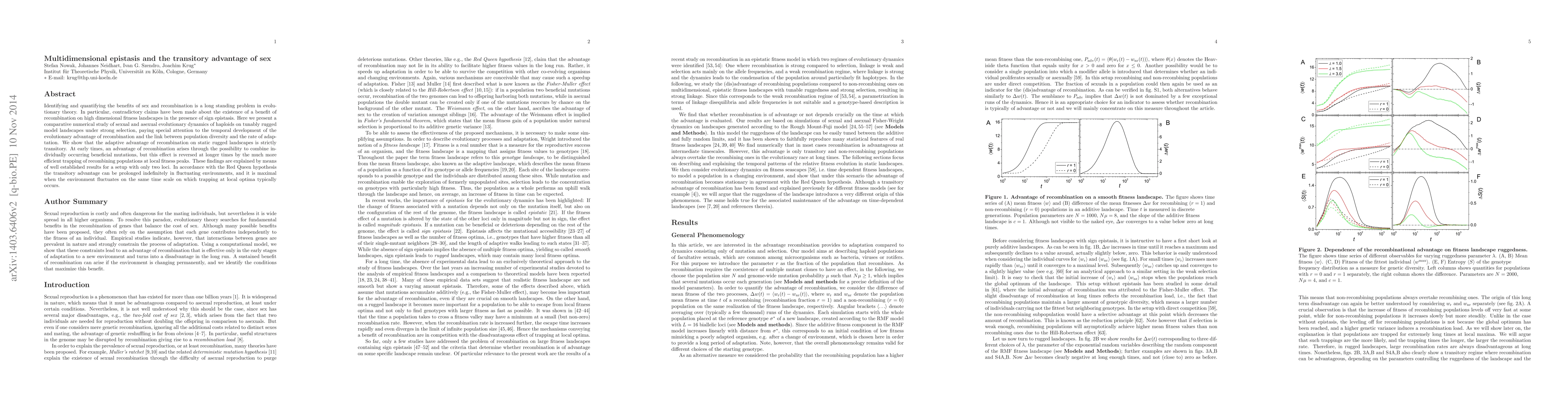 Identifying and quantifying the benefits of sex and recombination is a long standing problem in evolutionary theory. In particular, contradictory claims have been made about the existence of a benefit of recombination on high dimensional fitness landscapes in the presence of sign epistasis. Here we present a comparative numerical study of sexual and asexual evolutionary dynamics of haploids on tunably rugged model landscapes under strong selection, paying special attention to the temporal development of the evolutionary advantage of recombination and the link between population diversity and the rate of adaptation. We show that the adaptive advantage of recombination on static rugged landscapes is strictly transitory. At early times, an advantage of recombination arises through the possibility to combine individually occurring beneficial mutations, but this effect is reversed at longer times by the much more efficient trapping of recombining populations at local fitness peaks. These findings are explained by means of well established results for a setup with only two loci. In accordance with the Red Queen hypothesis the transitory advantage can be prolonged indefinitely in fluctuating environments, and it is maximal when the environment fluctuates on the same time scale on which trapping at local optima typically occurs.
