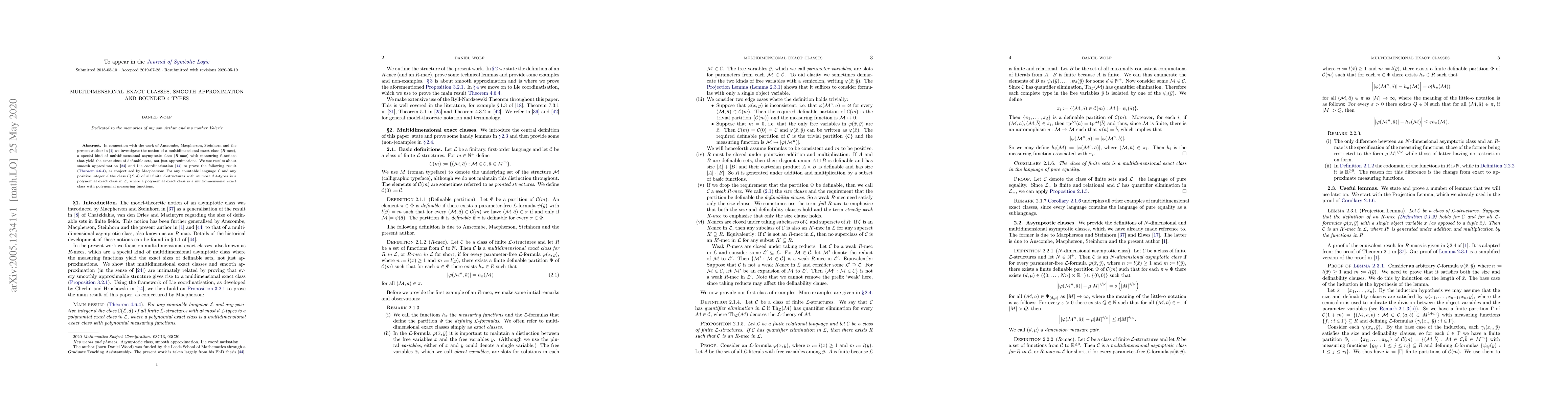 In connection with the work of Anscombe, Macpherson, Steinhorn and the present author in [1] we investigate the notion of a multidimensional exact class ($R$-mec), a special kind of multidimensional asymptotic class ($R$-mac) with measuring functions that yield the exact sizes of definable sets, not just approximations. We use results about smooth approximation [24] and Lie coordinatisation [14] to prove the following result (Theorem 4.6.4), as conjectured by Macpherson: For any countable language $\mathcal{L}$ and any positive integer $d$ the class $\mathcal{C}(\mathcal{L},d)$ of all finite $\mathcal{L}$-structures with at most $d$ 4-types is a polynomial exact class in $\mathcal{L}$, where a polynomial exact class is a multidimensional exact class with polynomial measuring functions.