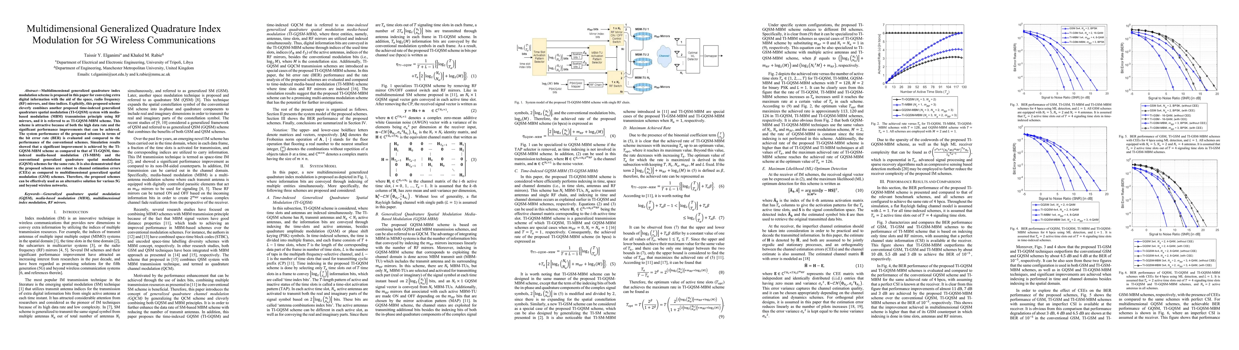 Multidimensional generalized quadrature index modulation scheme is proposed in this paper for conveying extra digital information with the aid of the space, radio frequency (RF) mirrors, and time indices. Explicitly, this proposed scheme cleverly combines another proposed time-indexed generalized quadrature spatial modulation (TI-GQSM) system with media-based modulation (MBM) transmission principle using RF mirrors, and it is referred to as TI-GQSM-MBM scheme. This scheme is attractive because of both the high data rate and the significant performance improvements that can be achieved. The system performance of the proposed schemes in terms of the bit error rate (BER) is evaluated and compared to the performance of the conventional schemes. Simulation results showed that a significant improvement is achieved by the TI-GQSM-MBM scheme as compared to that of TI-GQSM, time-indexed media-based modulation (TI-MBM) and the conventional generalized quadrature spatial modulation (GQSM) schemes for the same rate. It is also demonstrated that the proposed schemes are robust to channel estimation errors (CEEs) as compared to multidimensional generalized spatial modulation (GSM) schemes. Therefore, the proposed schemes can be effectively used as an alternative solution for various 5G and beyond wireless networks.
