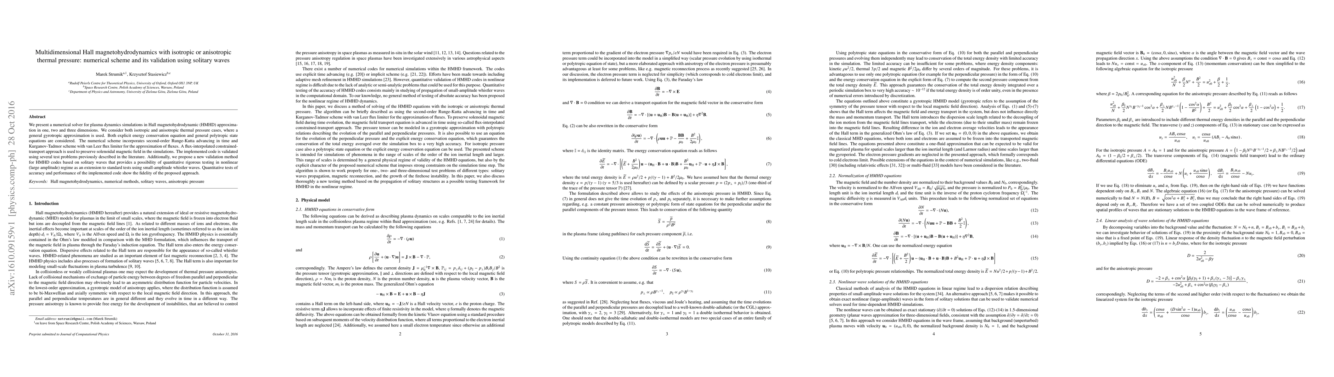 This paper introduces a numerical solver for simulating Hall magnetohydrodynamics in various dimensions, addressing both isotropic and anisotropic thermal pressure. The scheme employs advanced methods for flux approximation and magnetic field preservation, validated through rigorous tests including a new method for solitary waves.