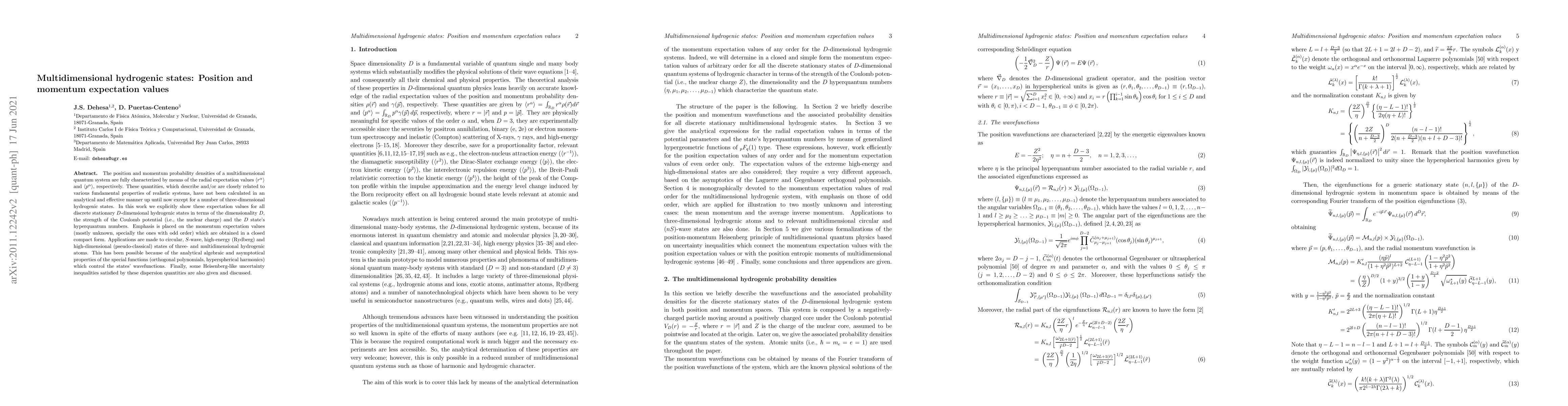 This paper provides analytical expressions for the position and momentum expectation values in multidimensional hydrogenic states, focusing on previously unknown momentum expectations, especially those of odd order. These results are achieved using the special functions governing the wavefunctions and are applicable to various hydrogenic atom states.