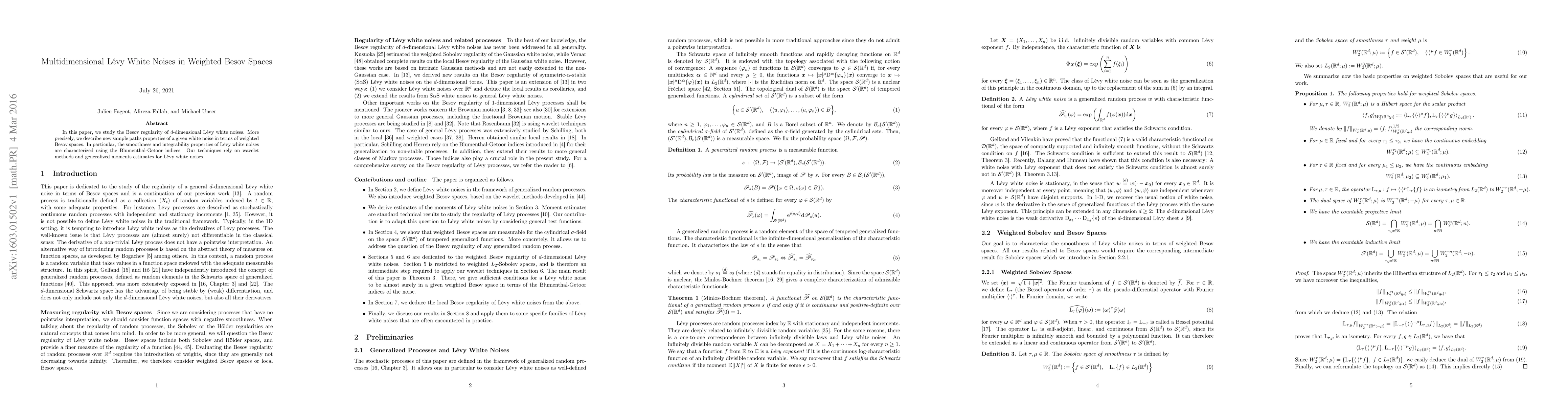 This paper explores the Besov regularity of d-dimensional Lévy white noises, characterizing their smoothness and integrability via weighted Besov spaces and Blumenthal-Getoor indices, employing wavelet methods and generalized moments estimates.