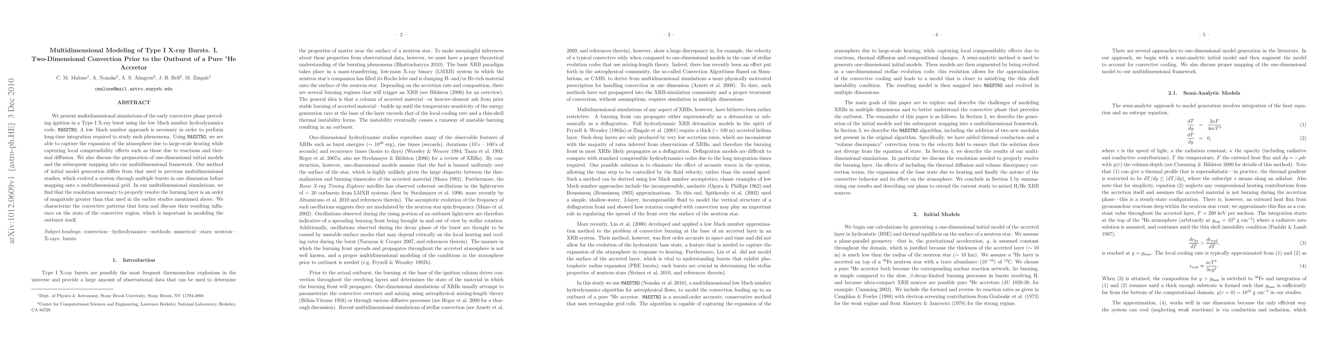 We present multidimensional simulations of the early convective phase preceding ignition in a Type I X-ray burst using the low Mach number hydrodynamics code, MAESTRO. A low Mach number approach is necessary in order to perform long-time integration required to study such phenomena. Using MAESTRO, we are able to capture the expansion of the atmosphere due to large-scale heating while capturing local compressibility effects such as those due to reactions and thermal diffusion. We also discuss the preparation of one-dimensional initial models and the subsequent mapping into our multidimensional framework. Our method of initial model generation differs from that used in previous multidimensional studies, which evolved a system through multiple bursts in one dimension before mapping onto a multidimensional grid. In our multidimensional simulations, we find that the resolution necessary to properly resolve the burning layer is an order of magnitude greater than that used in the earlier studies mentioned above. We characterize the convective patterns that form and discuss their resulting influence on the state of the convective region, which is important in modeling the outburst itself.