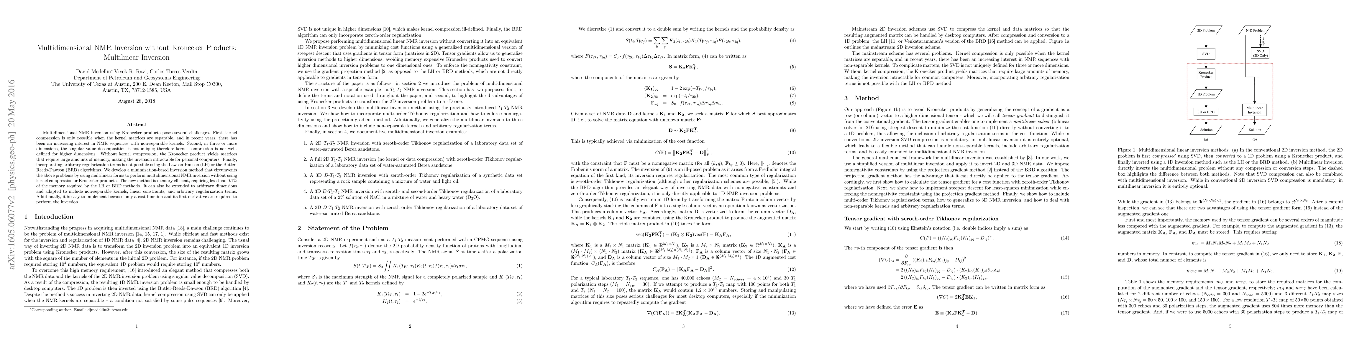 Researchers developed a new method for multidimensional NMR inversion that avoids memory-intensive Kronecker products and arbitrary regularization terms, making it more efficient and adaptable to various scenarios.