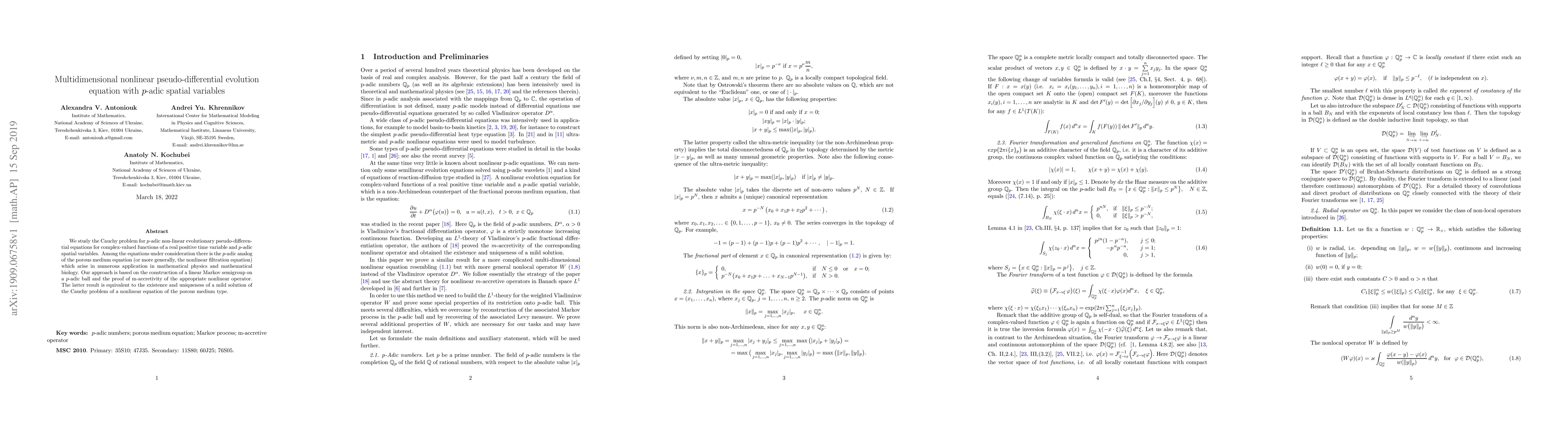 This paper investigates the Cauchy problem for $p$-adic nonlinear pseudo-differential evolution equations, focusing on the p-adic analog of the porous medium equation. The authors establish existence and uniqueness of solutions via the construction of a linear Markov semigroup and the proof of m-accretivity for the nonlinear operator.