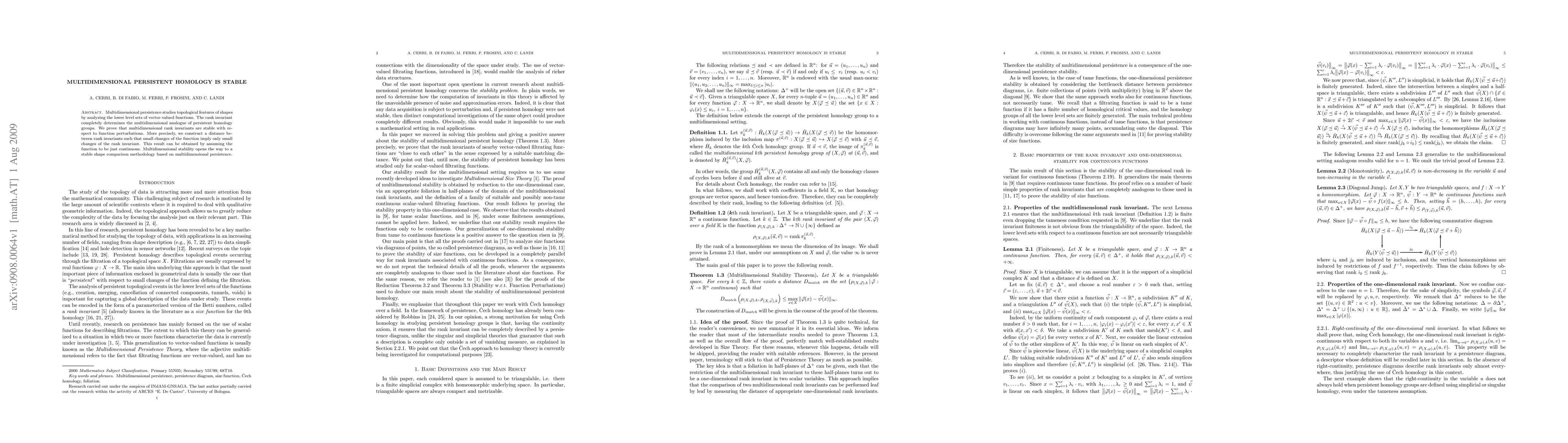 This paper proves the stability of multidimensional rank invariants under small perturbations of continuous vector-valued functions, establishing a foundation for stable shape comparison using multidimensional persistence.