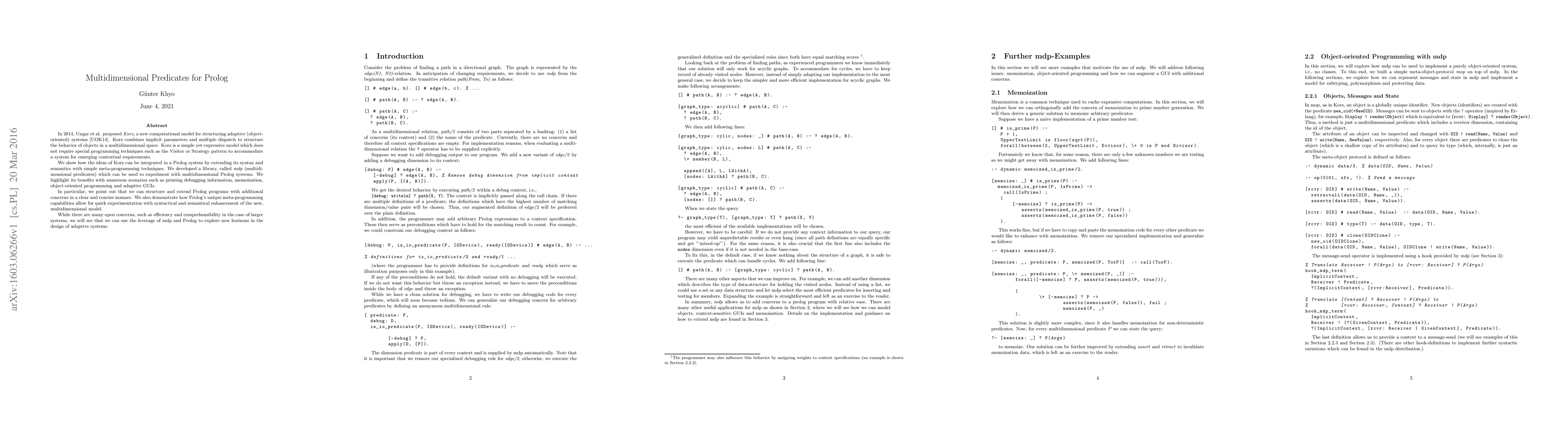 This paper introduces a library called mdp that enables multidimensional Prolog systems, allowing for structure and extension of programs with additional concerns in a clear and concise manner.