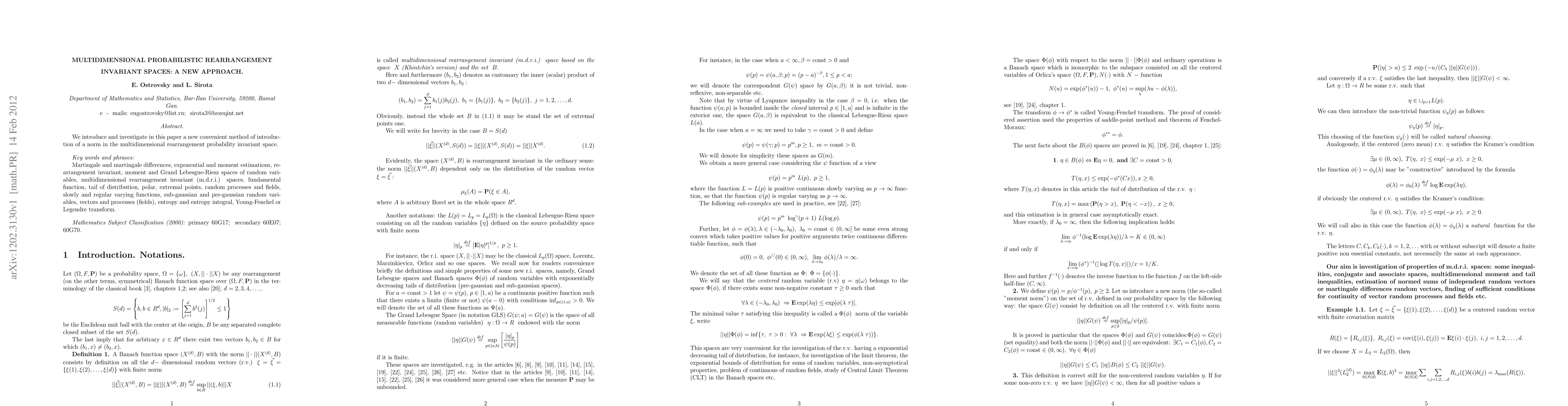 Summary: This paper presents a novel approach to introducing a norm in multidimensional rearrangement probability invariant spaces, offering a new method for probabilistic analysis in these spaces. The proposed method aims to enhance the understanding and application of these spaces.