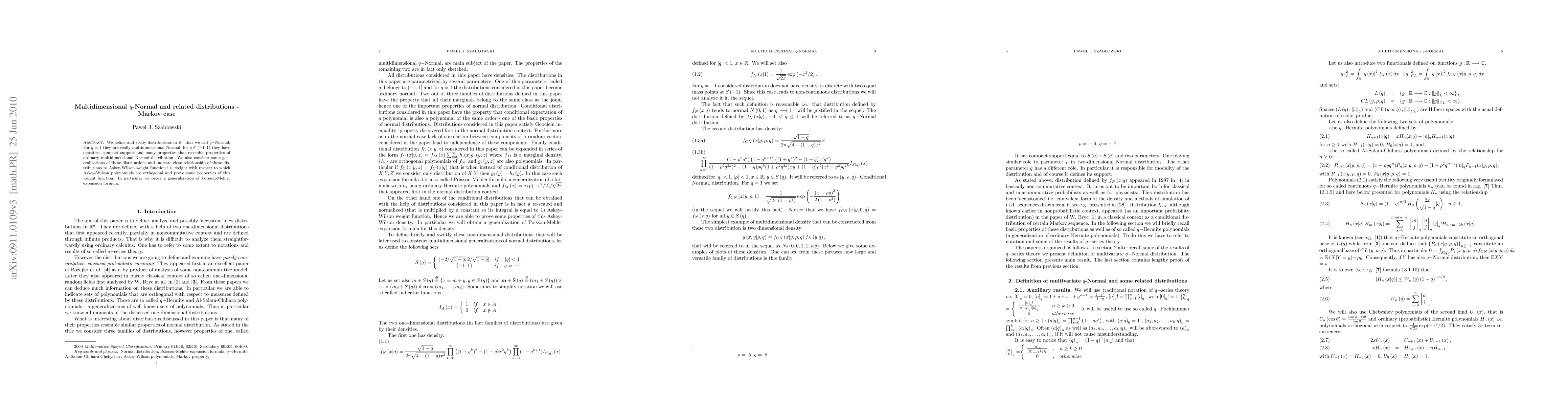 We define and study distributions in R^{d} that we call q-Normal. For q=1 they are really multidimensional Normal, for q\in(-1,1) they have densities, compact support and many properties that resemble properties of ordinary multidimensional Normal distribution. We also consider some generalizations of these distributions and indicate close relationship of these distributions to Askey-Wilson weight function i.e. weight with respect which Askey-Wilson polynomials are orthogonal and prove some properties of this weight function. In particular we prove a generalization of Poisson-Mehler expansion formula