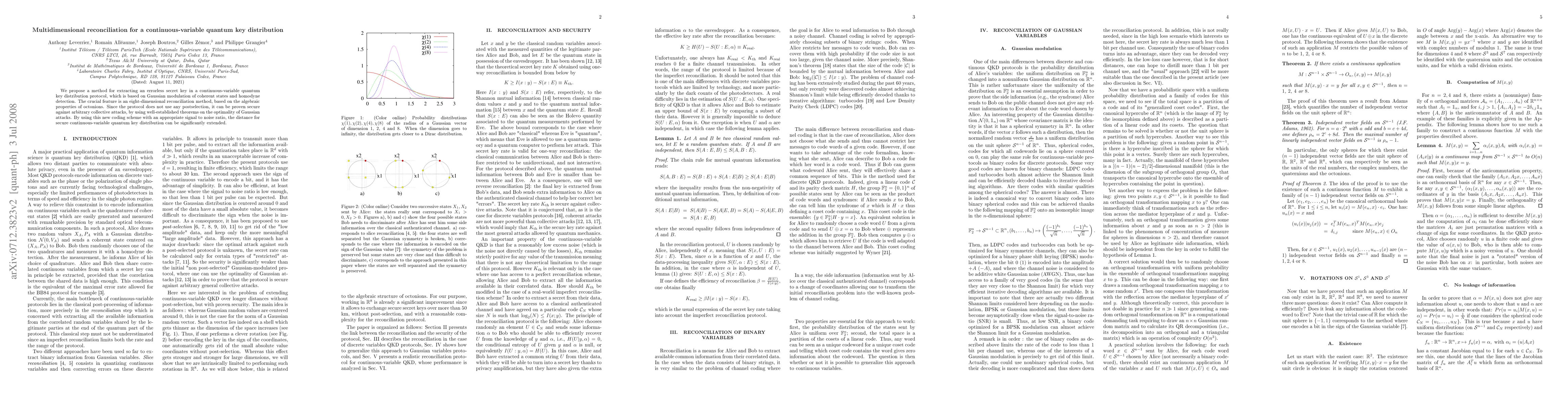 This paper proposes a new method for continuous-variable quantum key distribution using Gaussian modulation and homodyne detection, featuring an eight-dimensional reconciliation based on octonions. The protocol is secure against arbitrary collective attacks and extends the distance for secure key distribution.