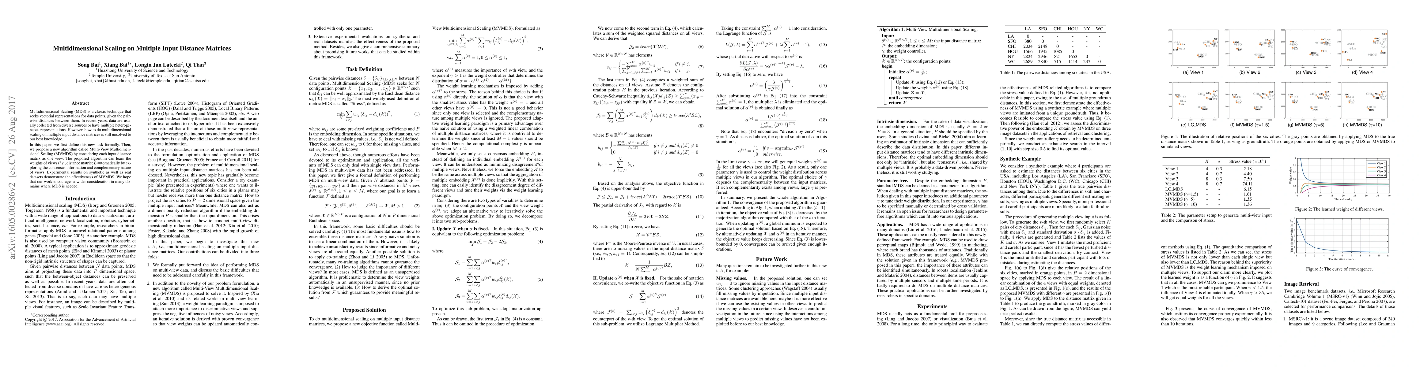 Multidimensional Scaling (MDS) is a classic technique that seeks vectorial representations for data points, given the pairwise distances between them. However, in recent years, data are usually collected from diverse sources or have multiple heterogeneous representations. How to do multidimensional scaling on multiple input distance matrices is still unsolved to our best knowledge. In this paper, we first define this new task formally. Then, we propose a new algorithm called Multi-View Multidimensional Scaling (MVMDS) by considering each input distance matrix as one view. Our algorithm is able to learn the weights of views (i.e., distance matrices) automatically by exploring the consensus information and complementary nature of views. Experimental results on synthetic as well as real datasets demonstrate the effectiveness of MVMDS. We hope that our work encourages a wider consideration in many domains where MDS is needed.