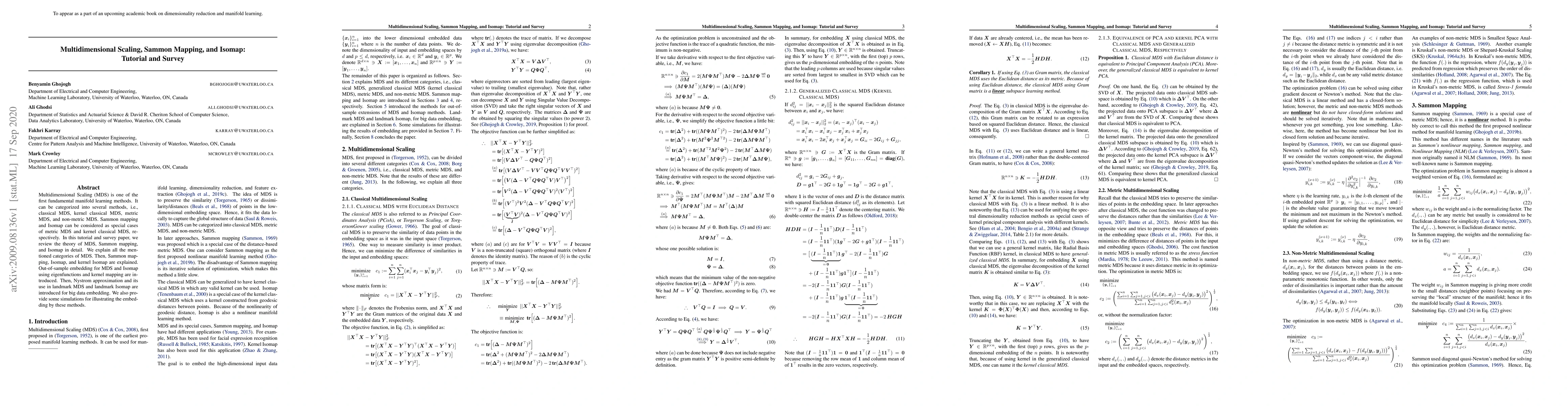 This paper provides a comprehensive review of manifold learning techniques including Multidimensional Scaling (MDS), Sammon mapping, and Isomap. It covers various MDS categories and explains Sammon mapping and Isomap in detail, along with their extensions for large data sets and out-of-sample embedding.
