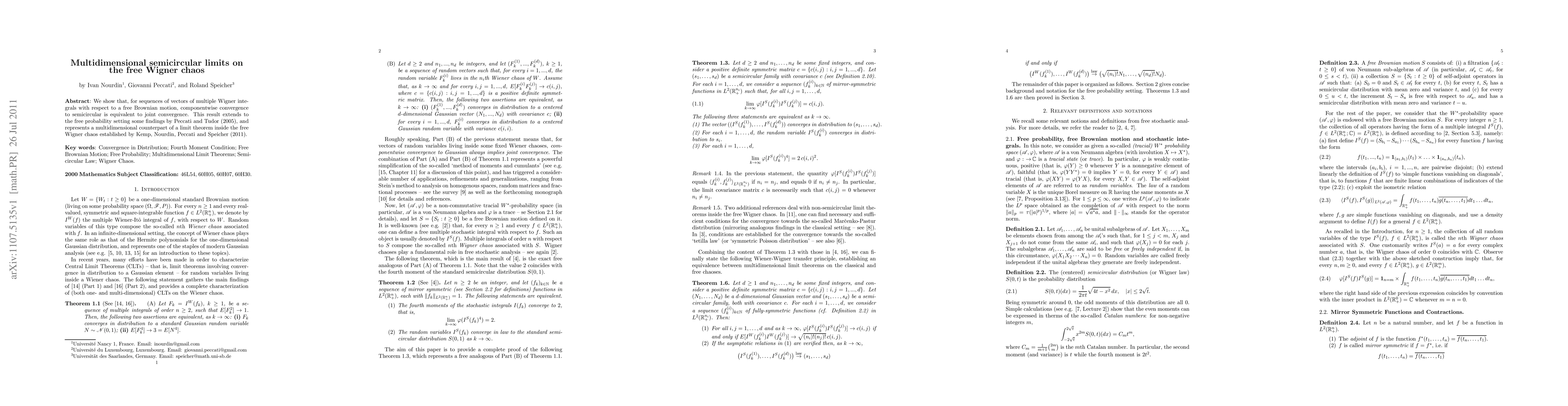 This paper demonstrates that componentwise convergence to a semicircular limit for sequences of multiple Wigner integrals with respect to free Brownian motion is equivalent to joint convergence, extending previous results in the free probability setting and establishing a multidimensional limit theorem within the free Wigner chaos.