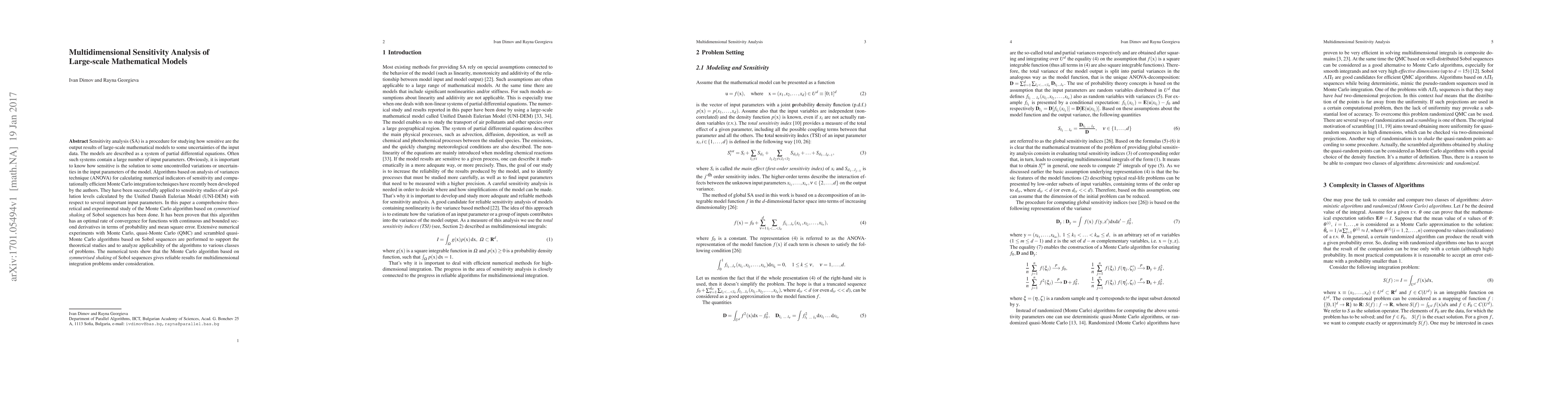 This paper presents a comprehensive study on multidimensional sensitivity analysis for large-scale mathematical models, focusing on the application of Monte Carlo algorithms based on symmetrised shaking of Sobol sequences. The authors demonstrate optimal convergence rates and reliable results for multidimensional integration problems, supported by extensive numerical experiments comparing various algorithms.