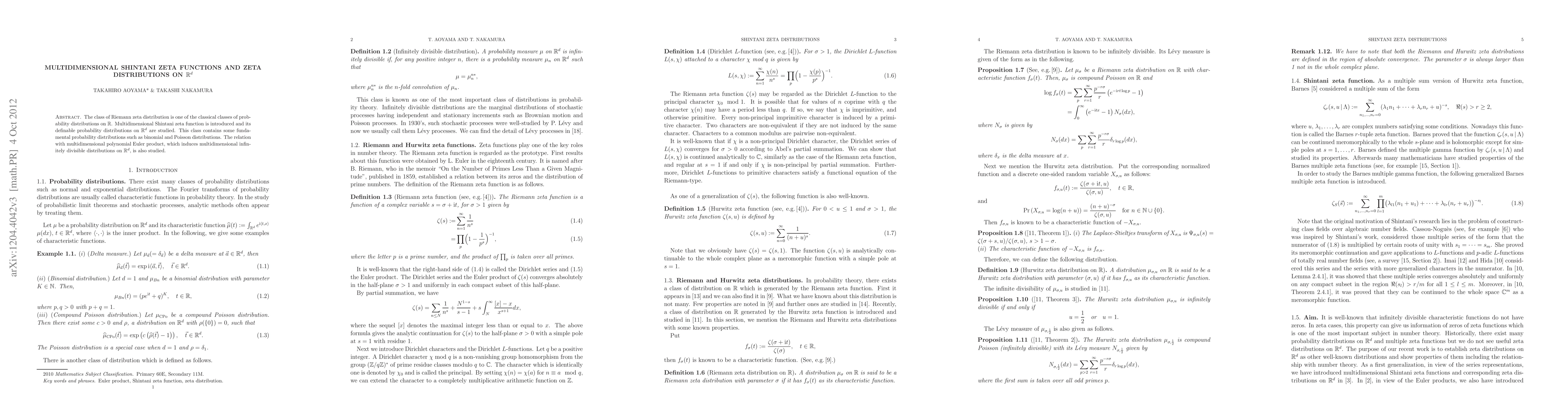 This paper introduces the multidimensional Shintani zeta function and explores its associated probability distributions on R^d, including fundamental distributions like binomial and Poisson. It also investigates the connection between these distributions and the multidimensional polynomial Euler product, leading to multidimensional infinitely divisible distributions.