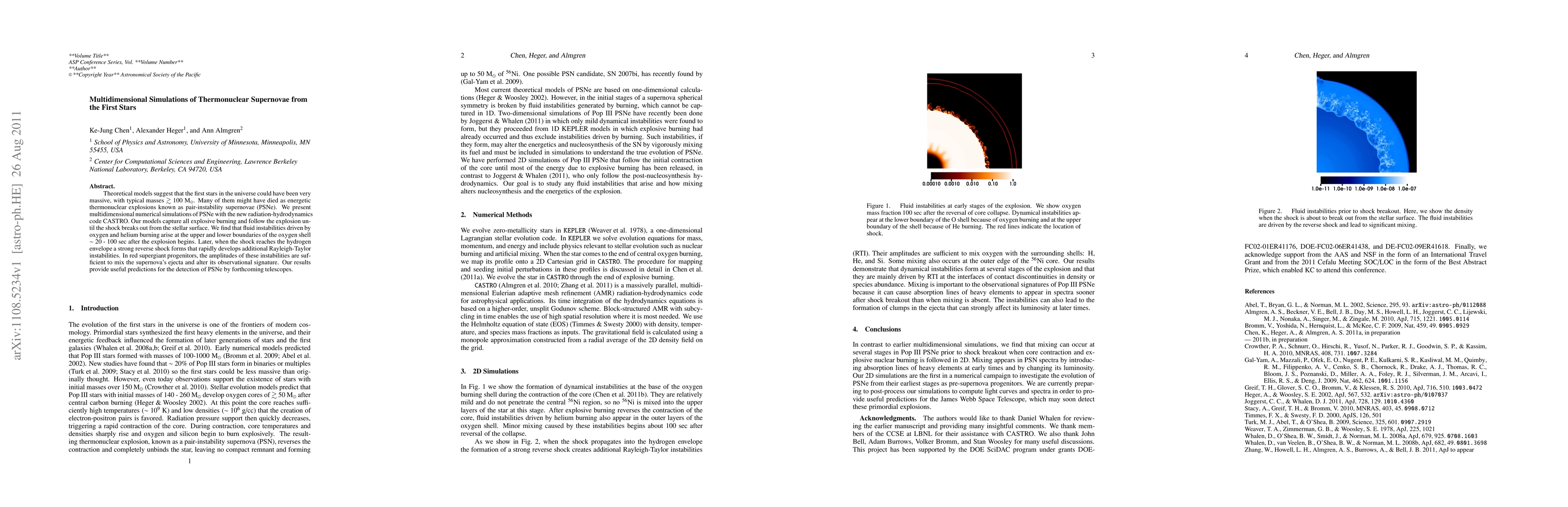 This paper presents multidimensional simulations of pair-instability supernovae from massive first stars using the CASTRO code, revealing fluid instabilities that mix ejecta and alter observational signatures, with implications for future telescope detections.