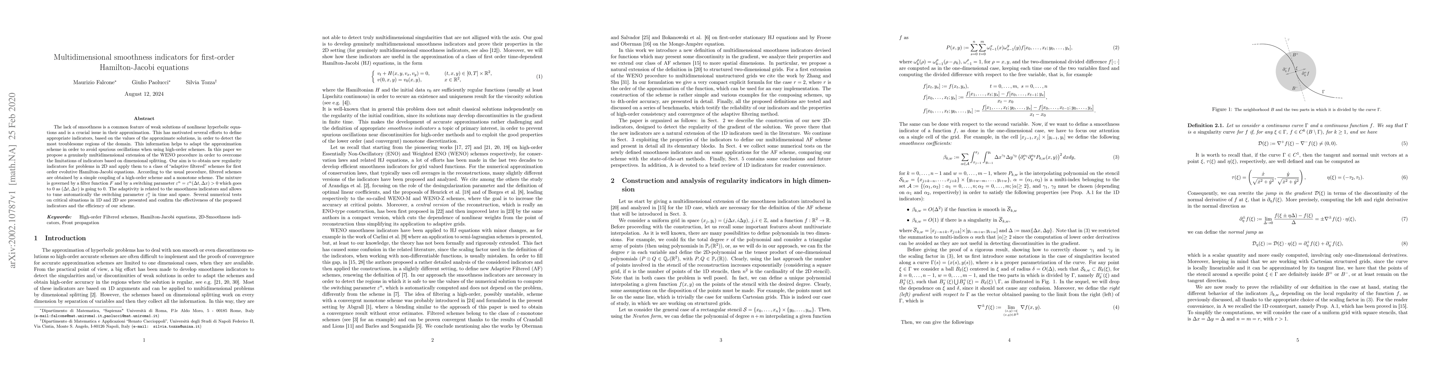 The lack of smoothness is a common feature of weak solutions of nonlinear hyperbolic equations and is a crucial issue in their approximation. This has motivated several efforts to define appropriate indicators, based on the values of the approximate solutions, in order to detect the most troublesome regions of the domain. This information helps to adapt the approximation scheme in order to avoid spurious oscillations when using high-order schemes. In this paper we propose a genuinely multidimensional extension of the WENO procedure in order to overcome the limitations of indicators based on dimensional splitting. Our aim is to obtain new regularity indicators for problems in 2D and apply them to a class of ``adaptive filtered'' schemes for first order evolutive Hamilton-Jacobi equations. According to the usual procedure, filtered schemes are obtained by a simple coupling of a high-order scheme and a monotone scheme. The mixture is governed by a filter function $F$ and by a switching parameter $\varepsilon^n=\varepsilon^n({\Delta t,\Delta x})>0$ which goes to 0 as $(\Delta t,\Delta x)$ is going to 0. The adaptivity is related to the smoothness indicators and allows to tune automatically the switching parameter $\varepsilon^n_j$ in time and space. Several numerical tests on critical situations in 1D and 2D are presented and confirm the effectiveness of the proposed indicators and the efficiency of our scheme.