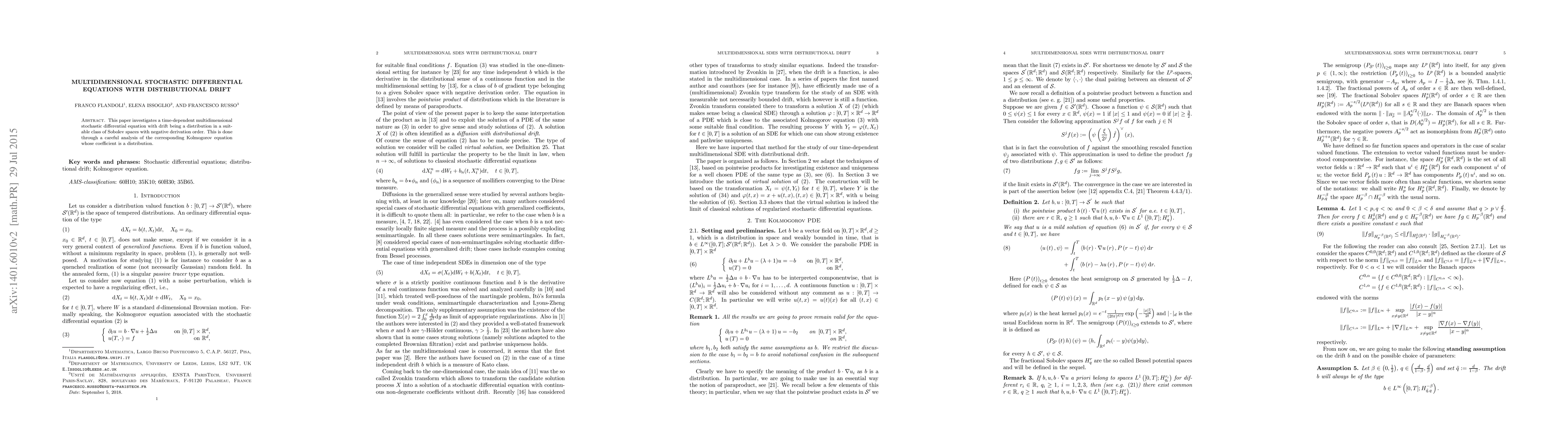 Researchers investigated multidimensional stochastic differential equations with a distributional drift in Sobolev spaces of negative derivation order, analyzing the corresponding Kolmogorov equation for key findings and implications.