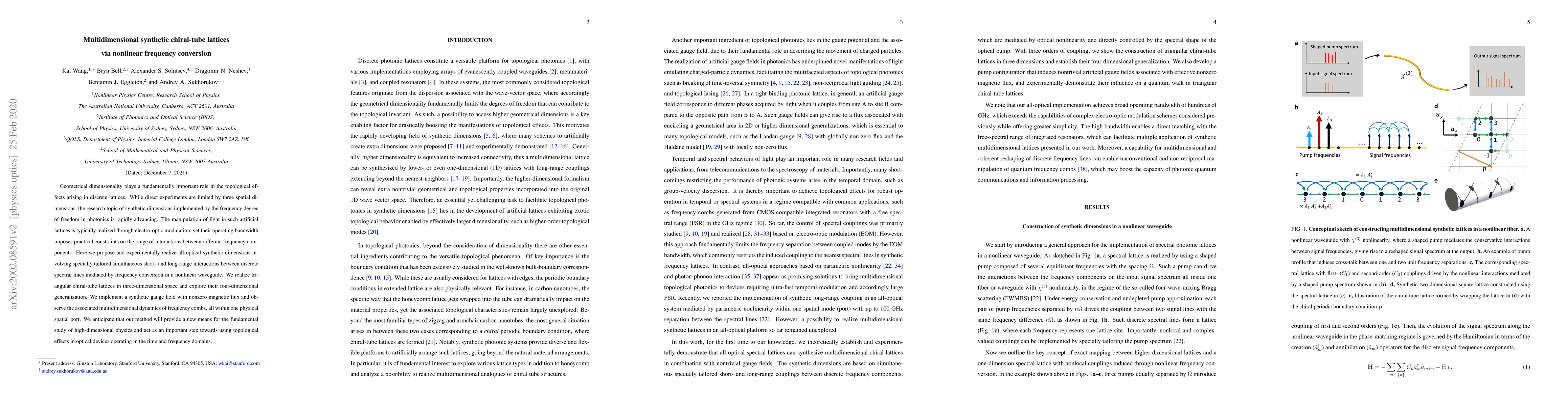 This paper proposes and demonstrates all-optical synthetic dimensions in photonics using nonlinear frequency conversion in a waveguide, enabling interactions between different frequency components. The study realizes triangular chiral-tube lattices and explores their four-dimensional generalizations, showcasing multidimensional dynamics and potential applications in high-dimensional physics and topological optical devices.