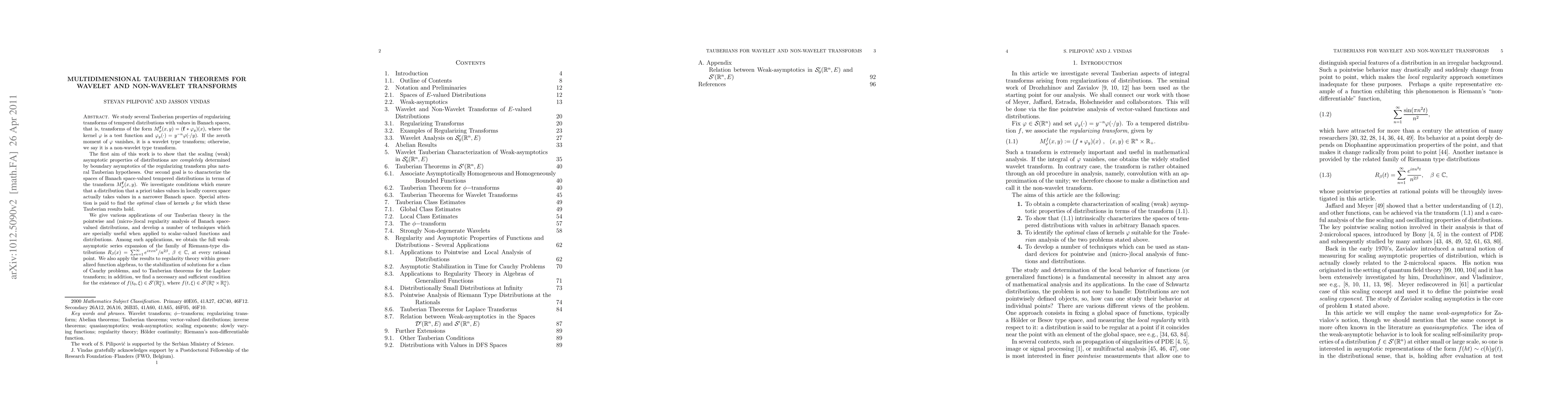 This paper explores Tauberian theorems for regularizing transforms of tempered distributions, distinguishing between wavelet and non-wavelet types. It establishes that the asymptotic properties of distributions are fully determined by the boundary asymptotics of the transform under certain conditions, and characterizes the spaces of Banach space-valued tempered distributions.