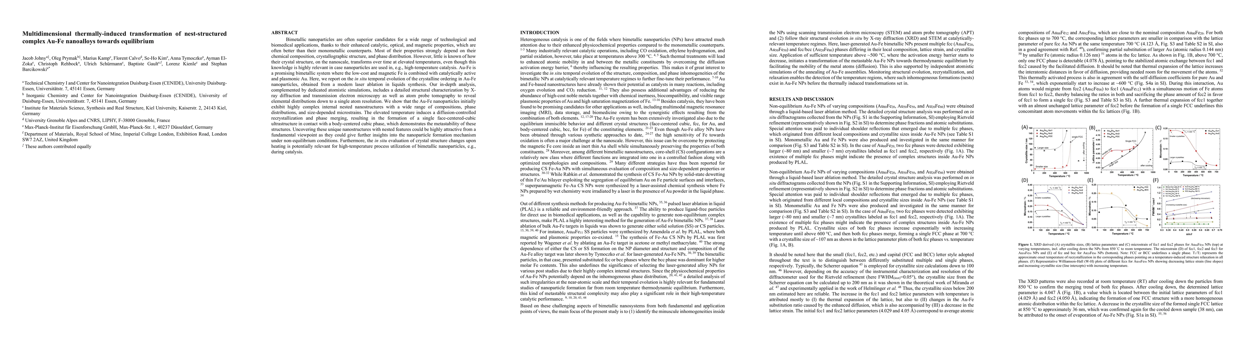 Researchers studied how temperature affects the structure of Au-Fe nanoparticles, finding that they transform into a stable, single crystal structure under elevated temperatures.