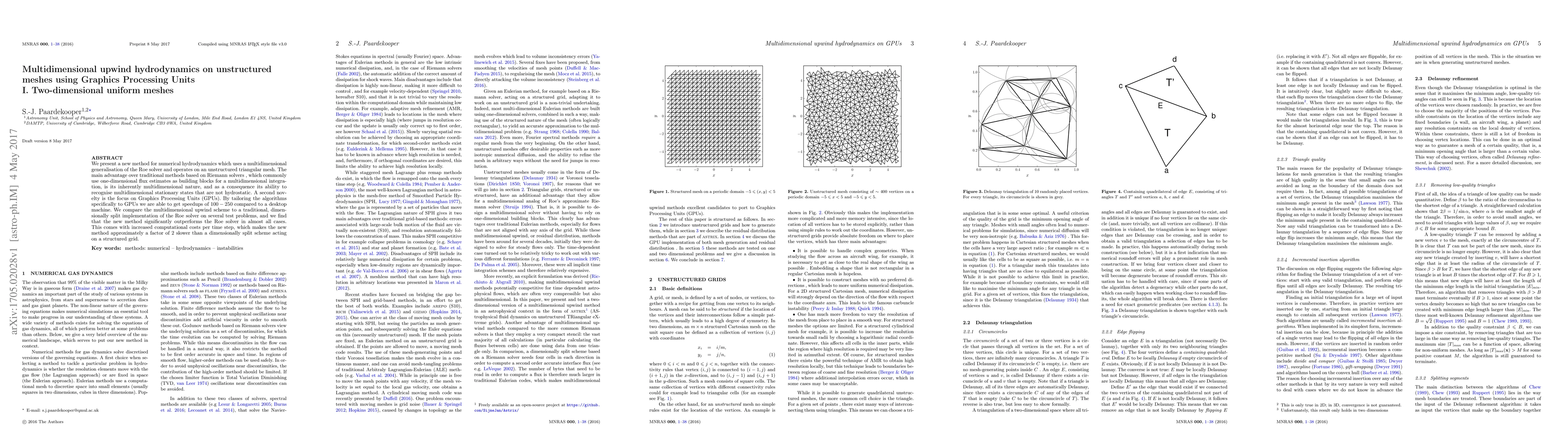 This paper introduces a novel multidimensional upwind hydrodynamics method on unstructured meshes, optimized for GPUs, which outperforms traditional Roe solver methods by recognizing non-hydrostatic stationary states. The GPU-tailored algorithms achieve speedups of 100-250x compared to desktop machines, though they are about twice as computationally expensive per time step.
