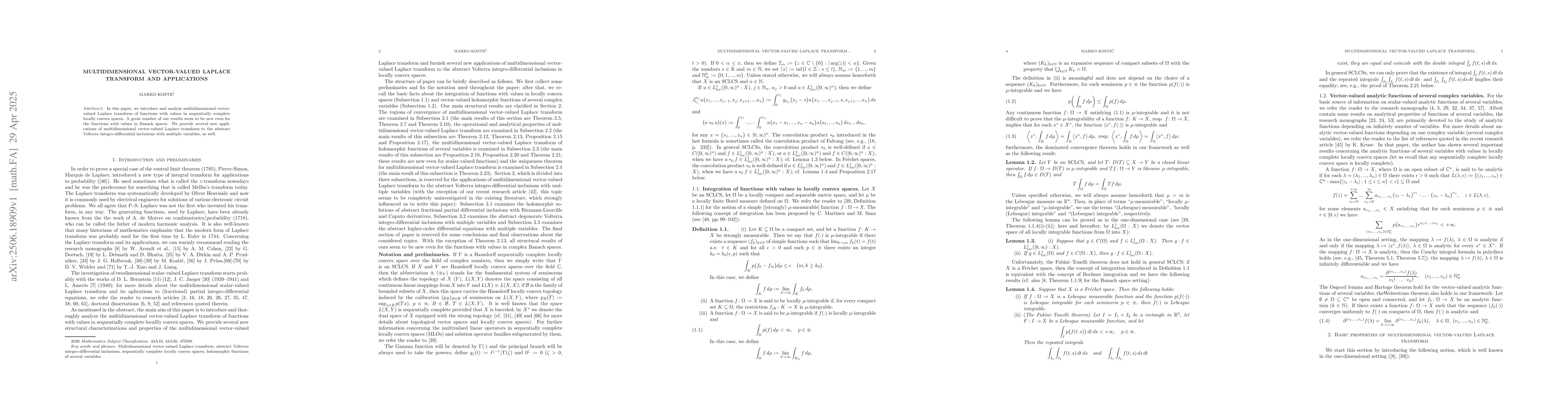 In this paper, we introduce and analyze multidimensional vector-valued Laplace transform of functions with values in sequentially complete locally convex spaces. A great number of our results seem to be new even for the functions with values in Banach spaces. We provide several new applications of multidimensional vector-valued Laplace transform to the abstract Volterra integro-differential inclusions with multiple variables, as well.