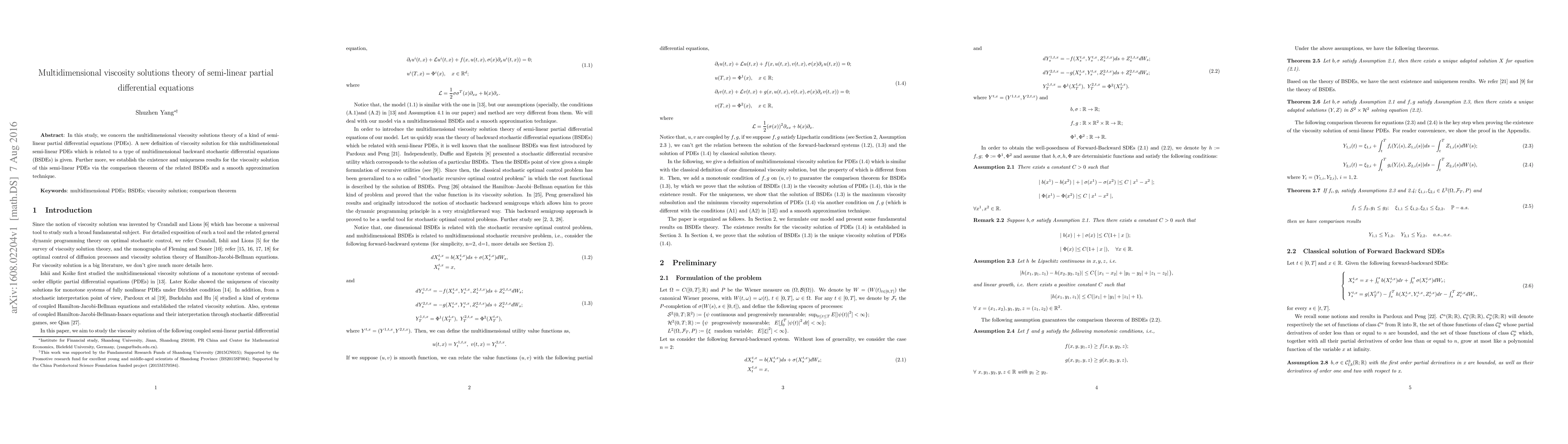 This paper introduces a new definition of multidimensional viscosity solutions for semi-linear partial differential equations (PDEs) linked to multidimensional backward stochastic differential equations (BSDEs). The study establishes existence and uniqueness of these solutions using the comparison theorem for BSDEs and a smooth approximation technique.