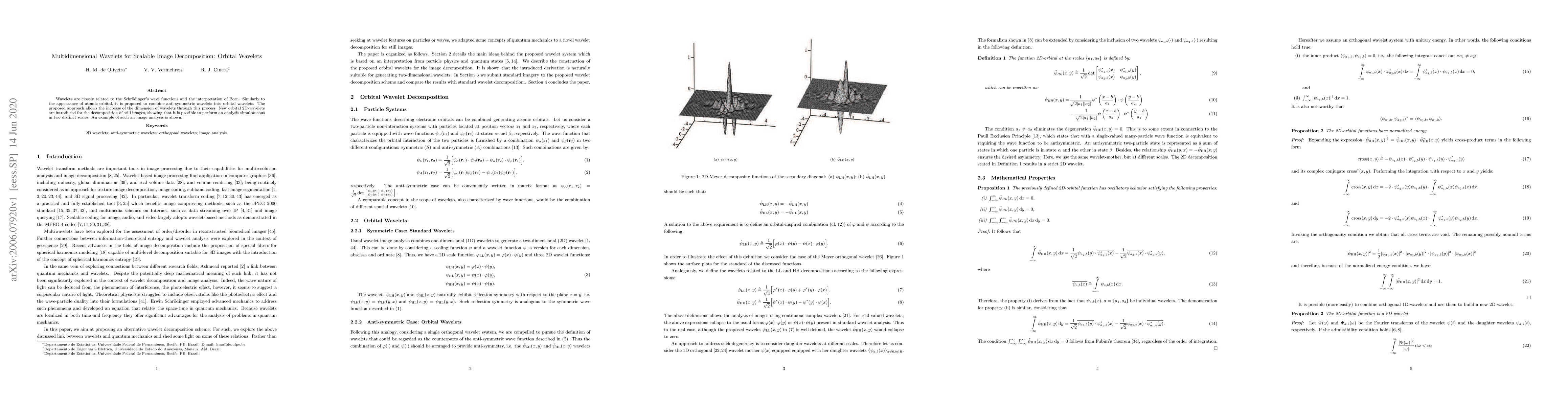 Wavelets are closely related to the Schr\"odinger's wave functions and the interpretation of Born. Similarly to the appearance of atomic orbital, it is proposed to combine anti-symmetric wavelets into orbital wavelets. The proposed approach allows the increase of the dimension of wavelets through this process. New orbital 2D-wavelets are introduced for the decomposition of still images, showing that it is possible to perform an analysis simultaneous in two distinct scales. An example of such an image analysis is shown.