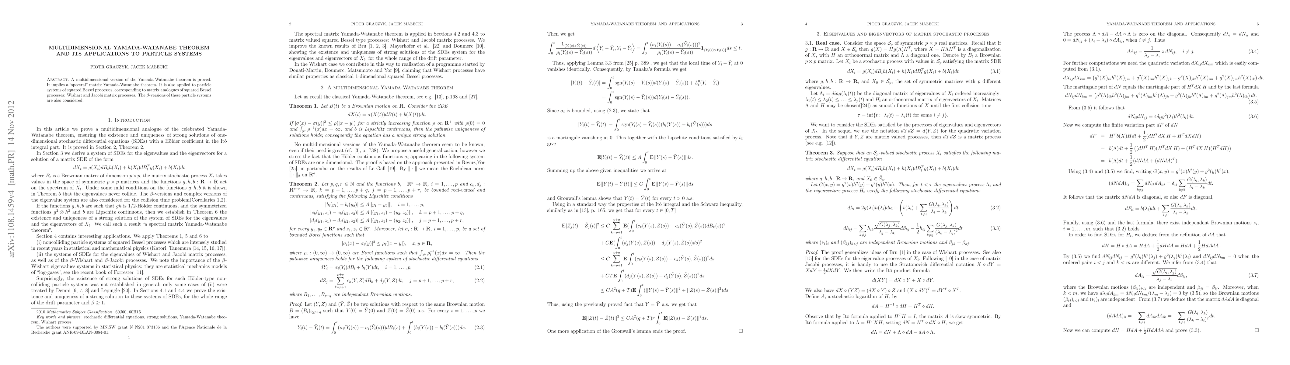 Summary: This paper proves a multidimensional Yamada-Watanabe theorem, which leads to a spectral matrix version, and applies it to particle systems involving Wishart and Jacobi matrix processes, including their beta-versions.