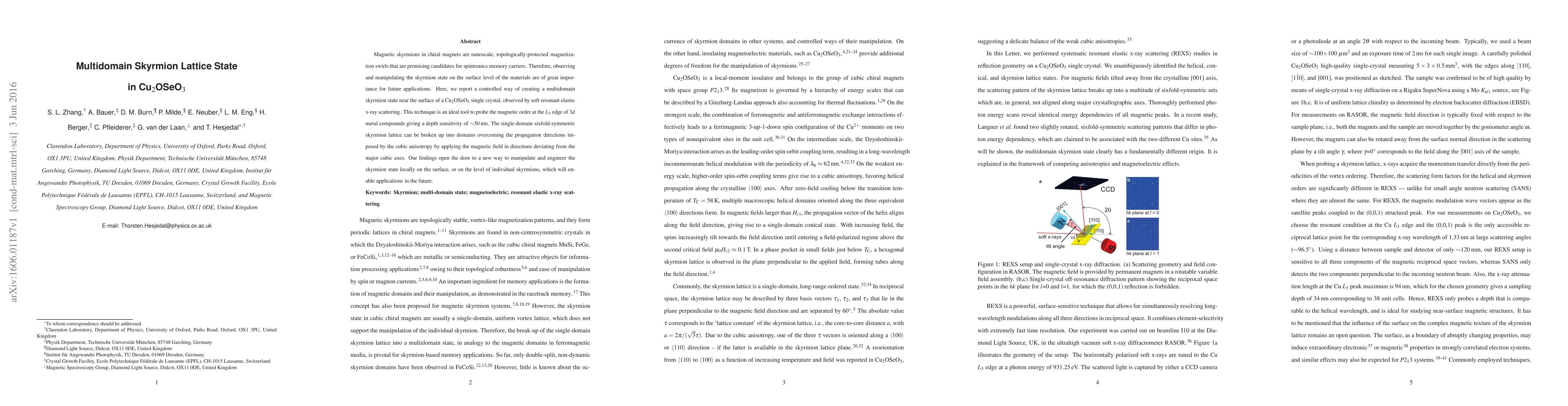 Researchers have developed a method to create a multidomain skyrmion state near the surface of Cu_2OSeO_3 crystals, using soft resonant elastic x-ray scattering. This technique allows for probing magnetic order with a depth sensitivity of ~50 nm, enabling manipulation of skyrmion states locally on the surface, paving the way for future spintronics applications.