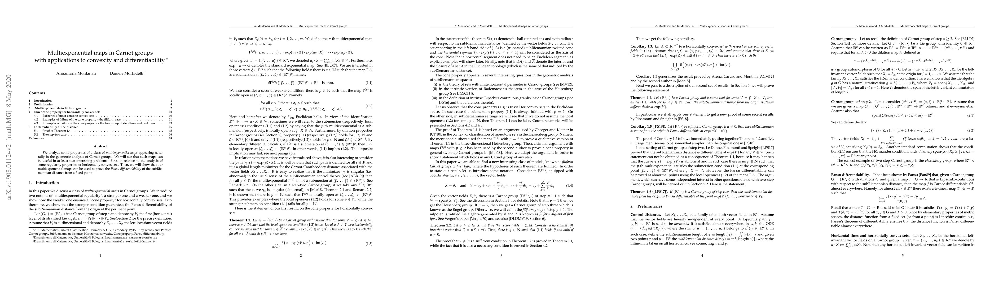 Summary: This paper explores multiexponential maps in Carnot groups, demonstrating their utility in analyzing horizontally convex sets and proving the Pansu differentiability of the subRiemannian distance.